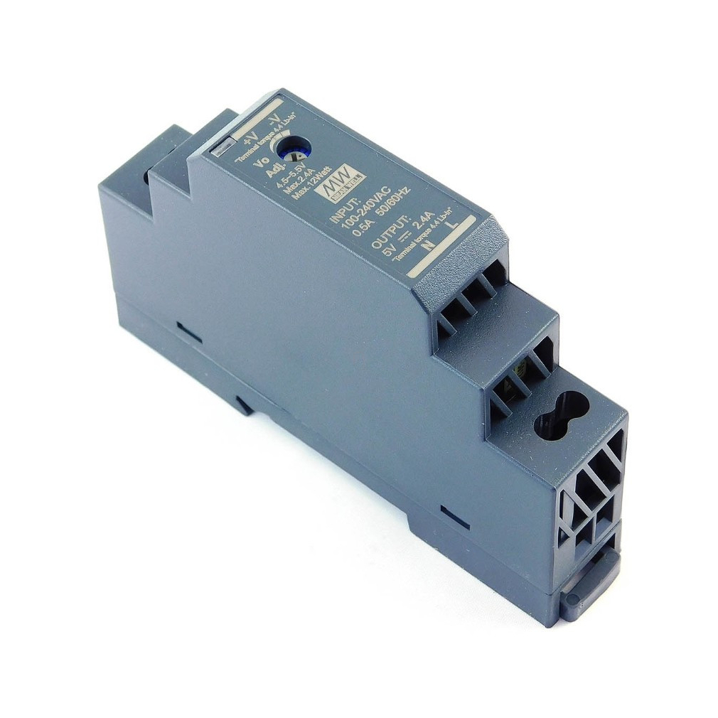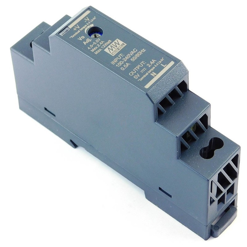 DIN sínre pattintható tápegység, Vin: 85-264VAC 120-370VDC, Vout: 5 VDC (0-2,4A), P: 12W Mean Well HDR-15-5