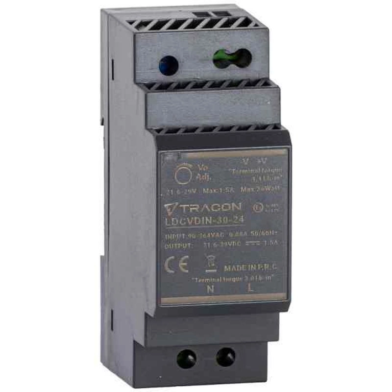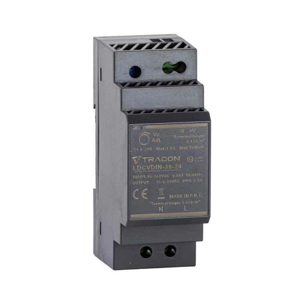 DIN sínre szerelhető tápegység szabályozható DC kimenettel DC24V,1,5A/36W LDCVDIN-30-24 Tracon