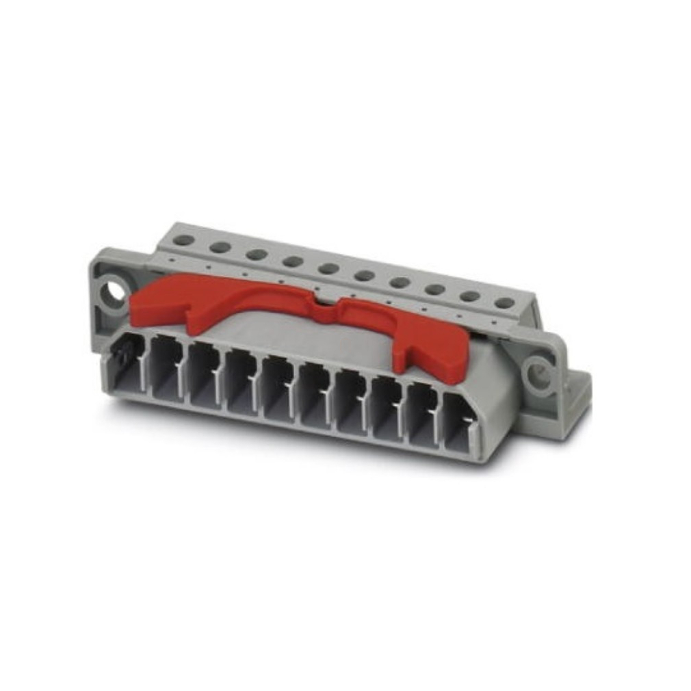 Dugaszfél, névleges feszültség: 500 V, névleges áram: 25 A, csatlakozási mód: Csavaros csatlakozás, csatlakozások száma: 10, keresztmetszet: 0,2 mm² - 4 mm², AWG: 24 - 12, szélesség: 92 mm, magasság: 18 mm, szín: szürke, szerelési mód: közvetlen felcsavarozás