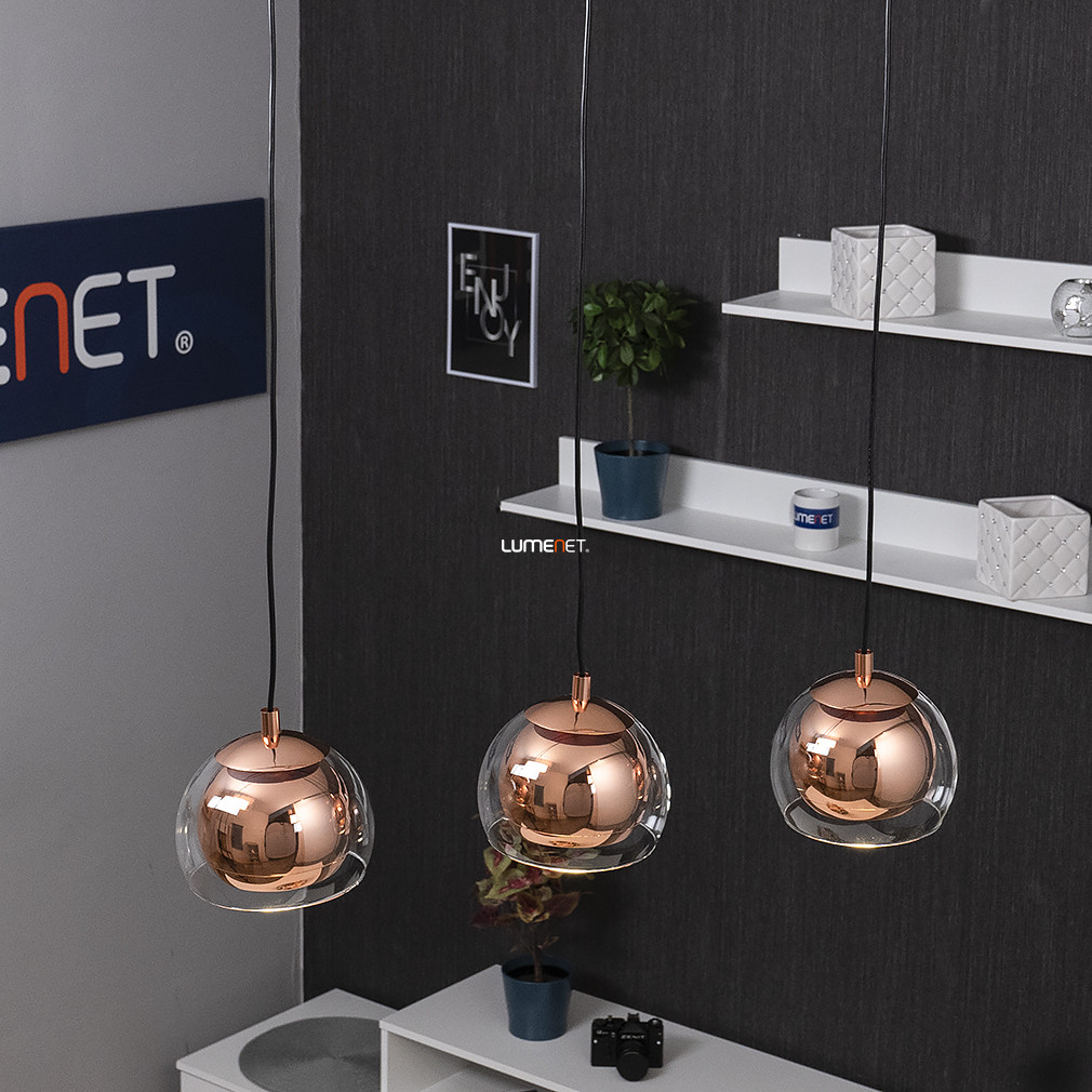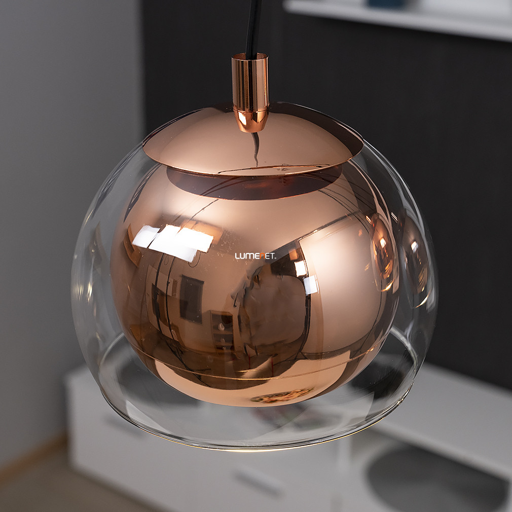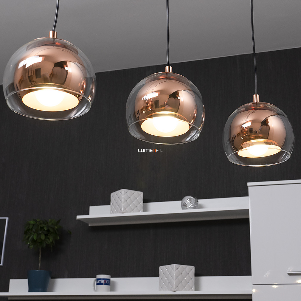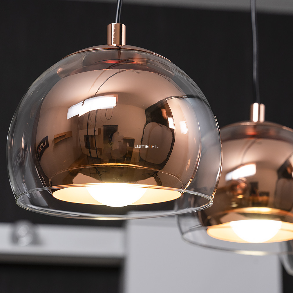 Dupla búrás függesztett lámpa vörösrézszínben, három foglalattal - Rocamar Eglo 94591