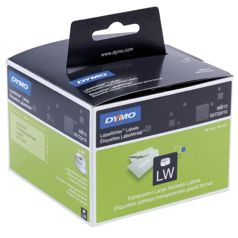 Dymo LabelWriter etikett, átlátszó, 89x36mm, 260db/tekercs (99013)