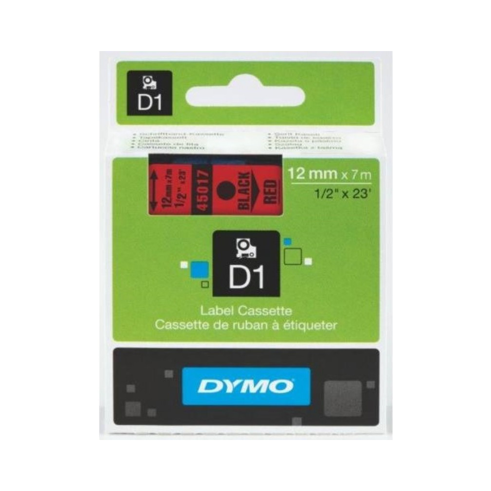 Dymo szalag D1 kazetta 12mm x7m piros (fekete betű) 45017