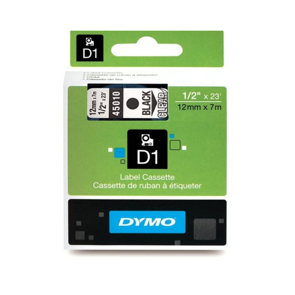 Dymo szalag D1 kazetta 12mm x7m víztiszta (fekete betű) 45010