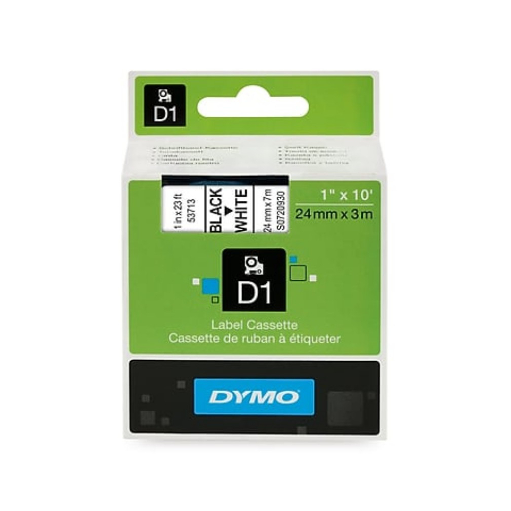 Dymo szalag D1 kazetta 24mmx7m fehér (fekete betű) 53713