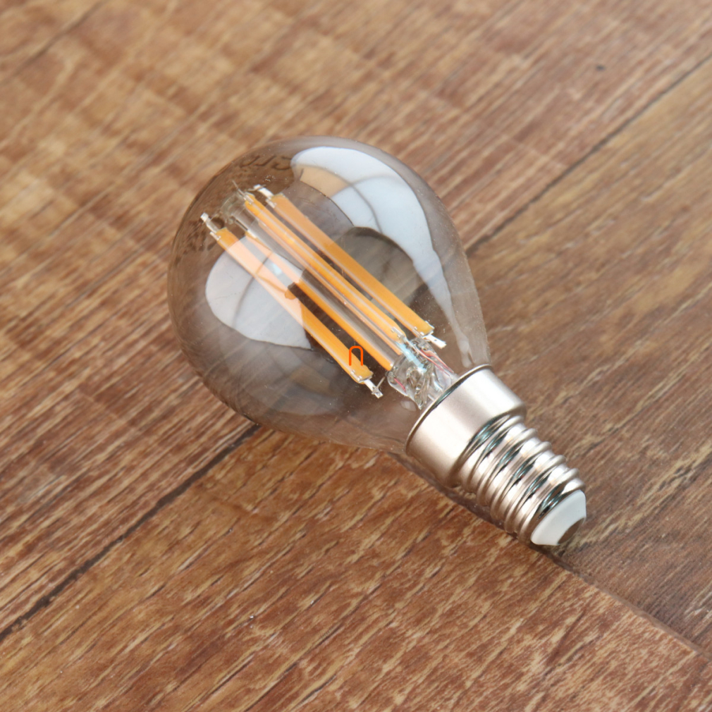 E14 LED fényforrás, 6W, 380lm, candlelight, füstszínű üveg