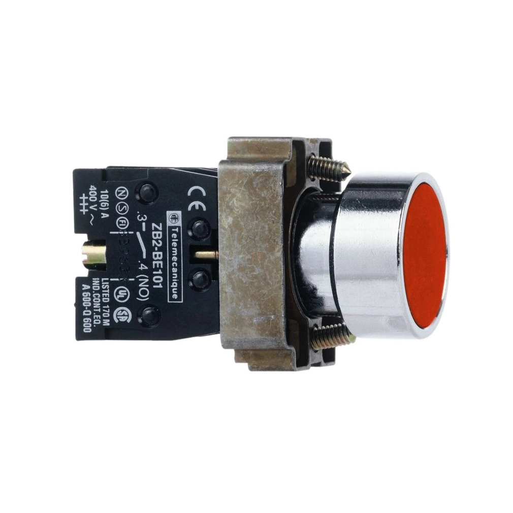 Schneider Electric Easy Harmony XB2 - XB2BA42C - Nyomógomb, piros, 1 NC, fém, panelbe süllyesztett, 22mm, visszatérő, jelöletlen