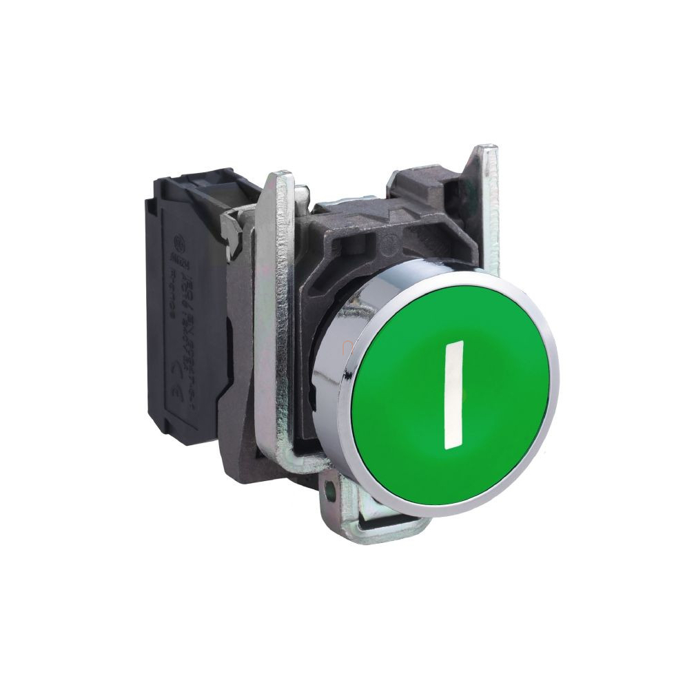 Schneider Electric Easy Harmony XB2 - XB2BA3311C - Nyomógomb, zöld, 1 NO, jelölt I, fém, panelbe süllyesztett, 22mm, visszatérő