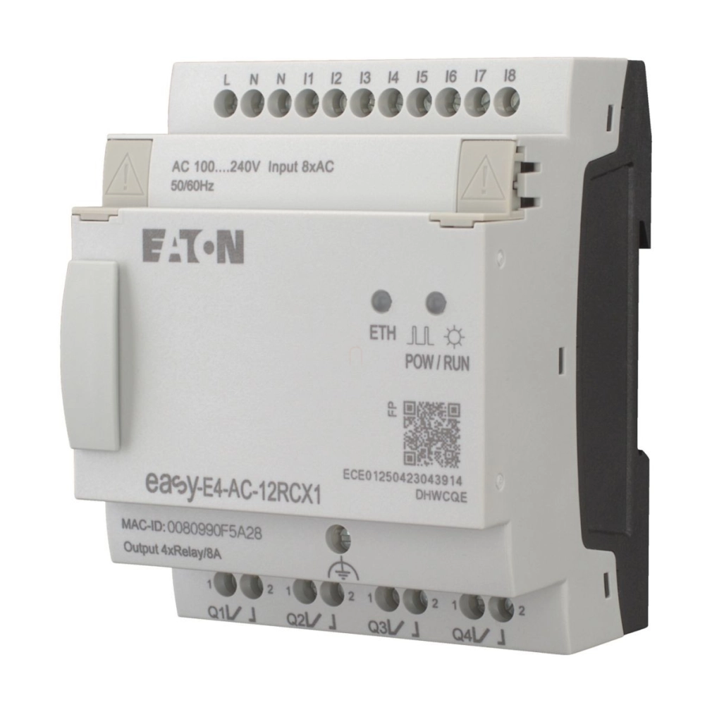 Eaton 100-240 v AC/DC, vezérlőrelé; 8di/4ro, kij.nélk, eth, easy-e4-ac-12rcx1-197216