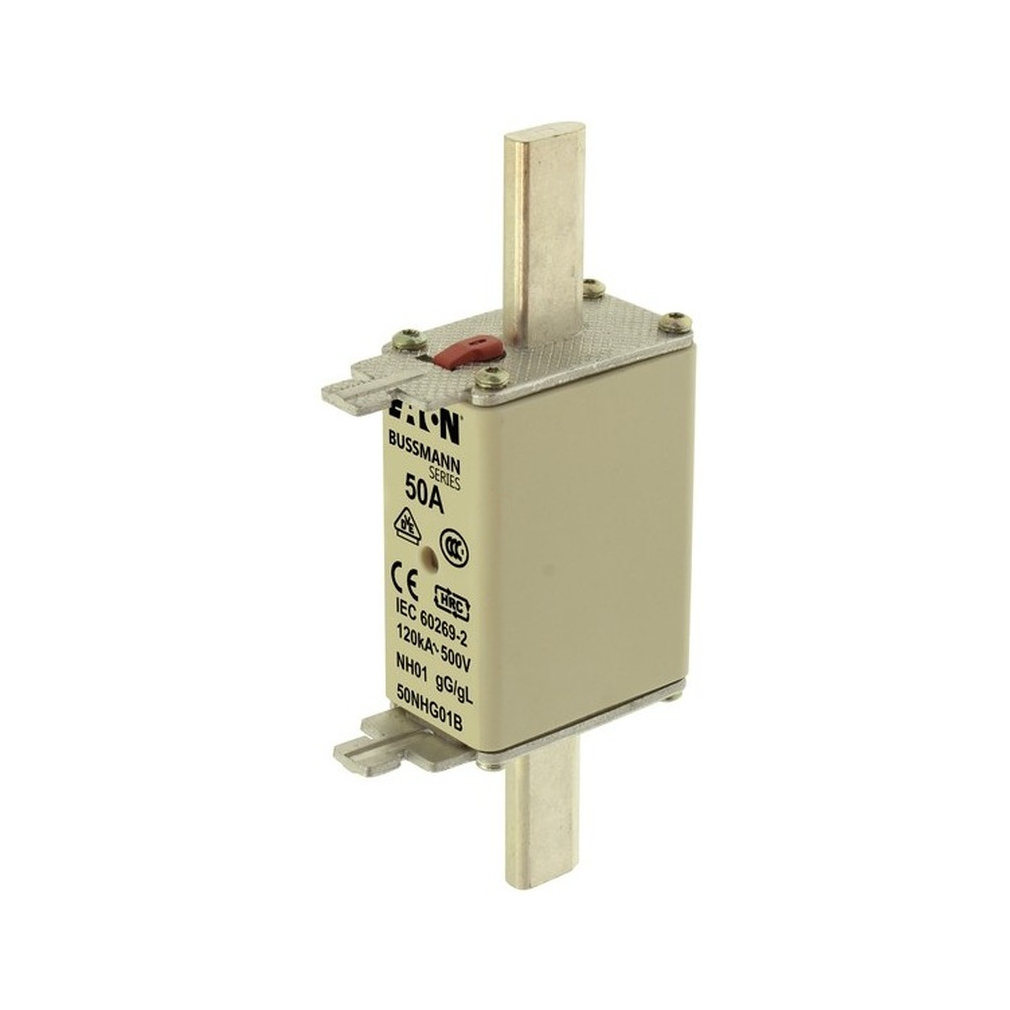 Eaton 50NHG01B NH FUSE 50A 500V GG/GL SIZE 01 NH-betét 50A, DIN 01 méret, 500V AC, gG/gL