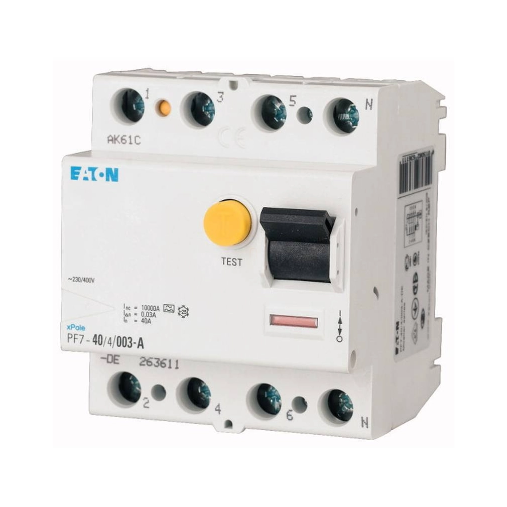PF7-25/4/05 Áram-védőkapcsoló 10kA 4 pólus 165811 Eaton