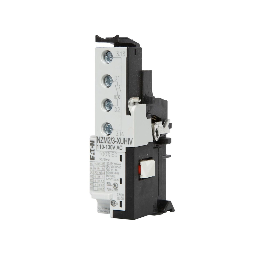 Eaton feszültségcsökkenési kioldó + 2 siető segédérintkező, NZM2/3-xuhiv110-130ac-259589