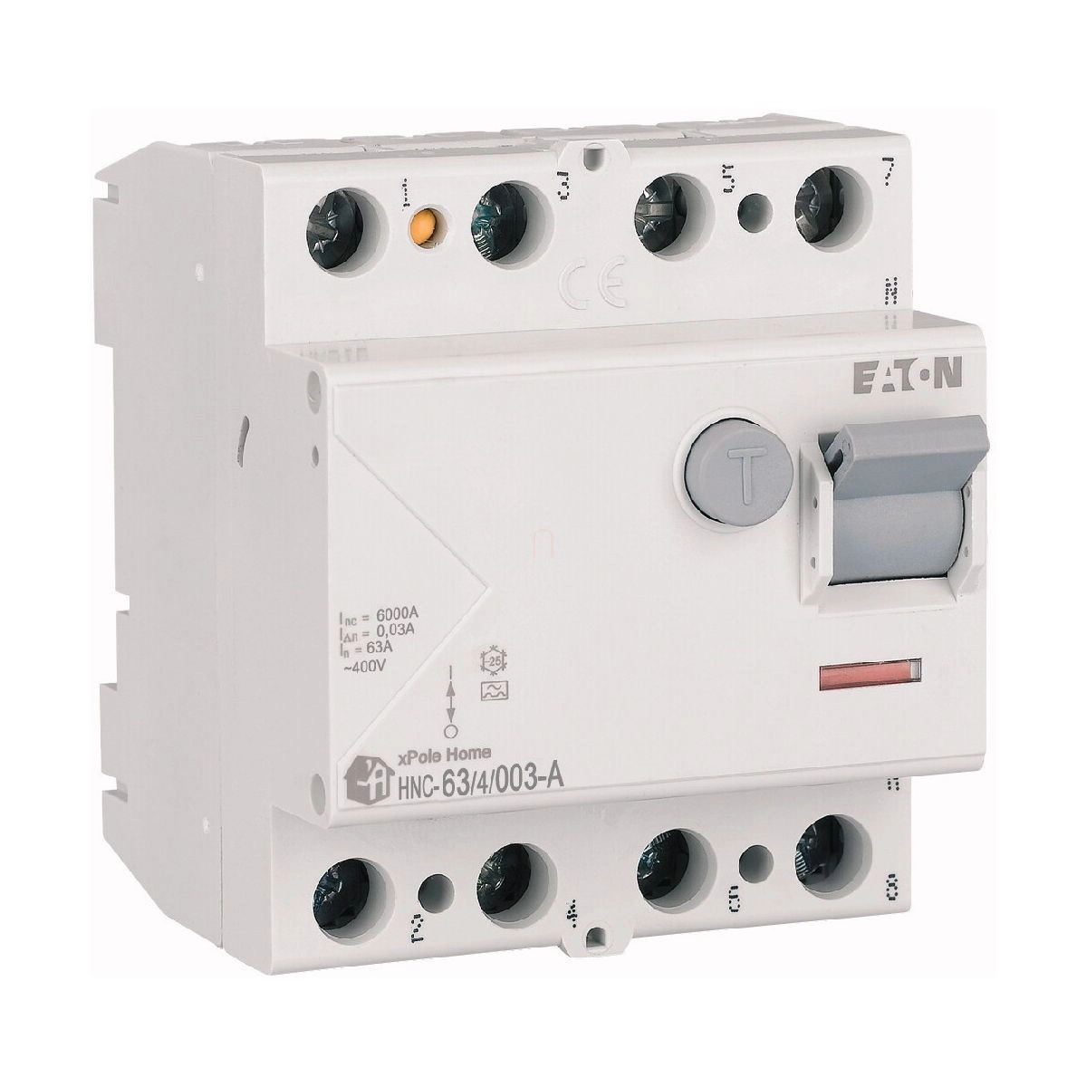 Eaton home áramvédő kapcsoló 6kA, négy pólusú, 63A, 30MA, 'a', hnc-63/4/003-a-194689