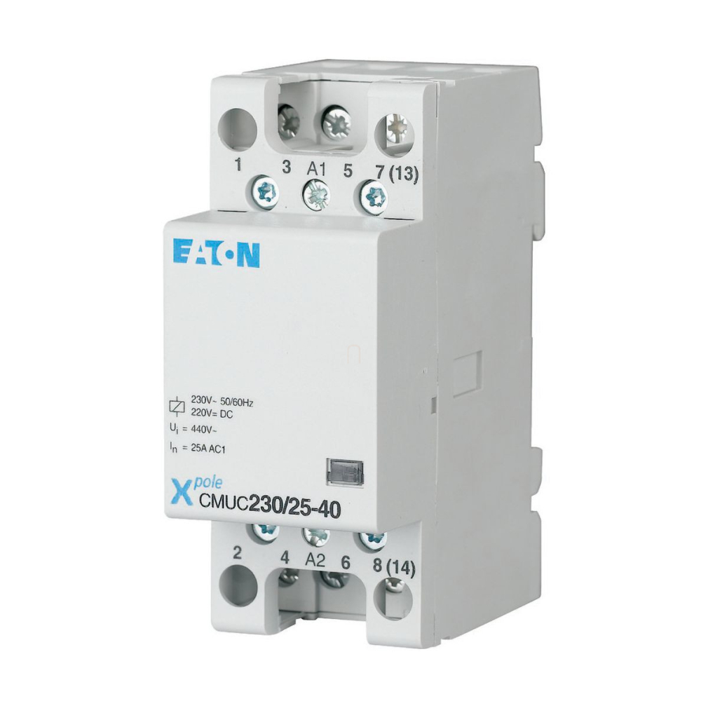 Eaton 137309 CMUC230/25-40 installációs kontaktor, 4z, 25A, 230V AC/DC