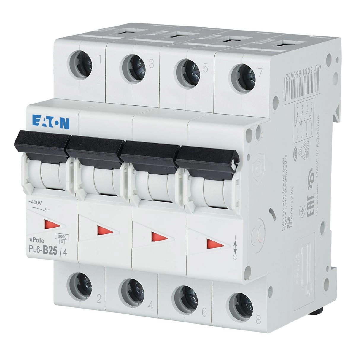 PL6-B25/4 Kismegszakító, 6kA 4 pólus 166498 Eaton