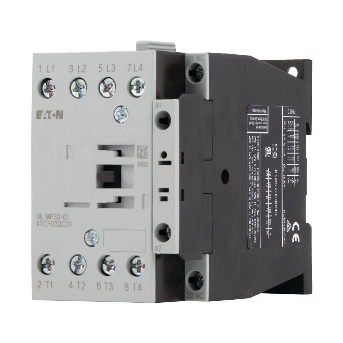 Eaton négy pólusú kontaktor, 32A/AC-1, AC, dilmp32-01 (230V 50Hz, 240V 60Hz) -118911