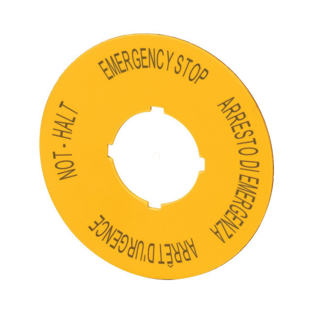 Eaton 121372 M22-XBK11 VÉSZ-KI tábla, DE, EN, FR, IT