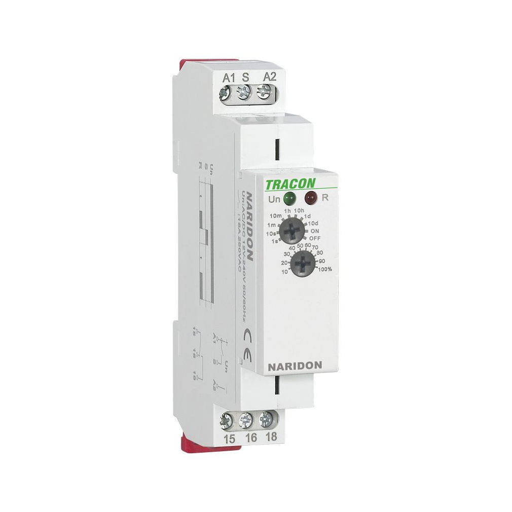 Egyfunkciós (meghúzáskésleltetéses) időrelé t1:0,1s-10h 16A NARIDON Tracon
