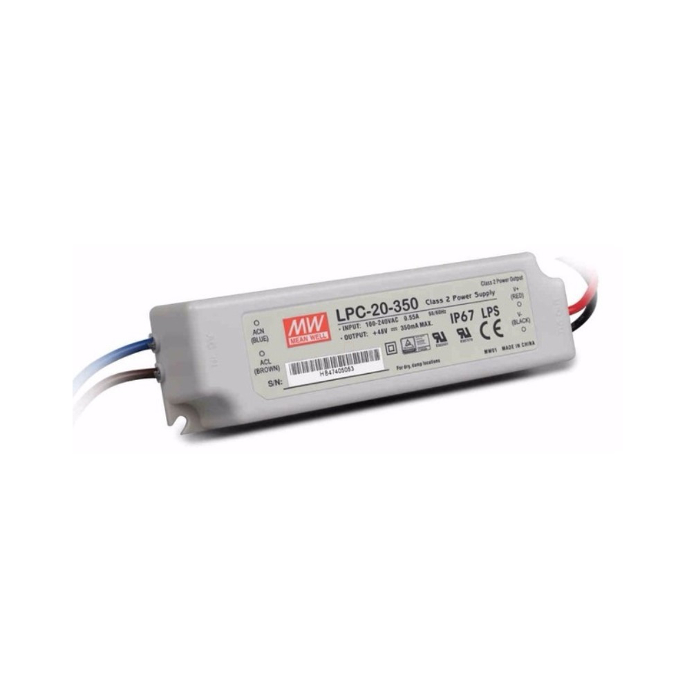 Egykimenetes Class 2 tápegység LED alkalmazásokhoz, Vin: 90-264 VAC, Vout: 3-48 VDC/350 mA, P: 20 W, IP67 Mean Well LPC-20-350