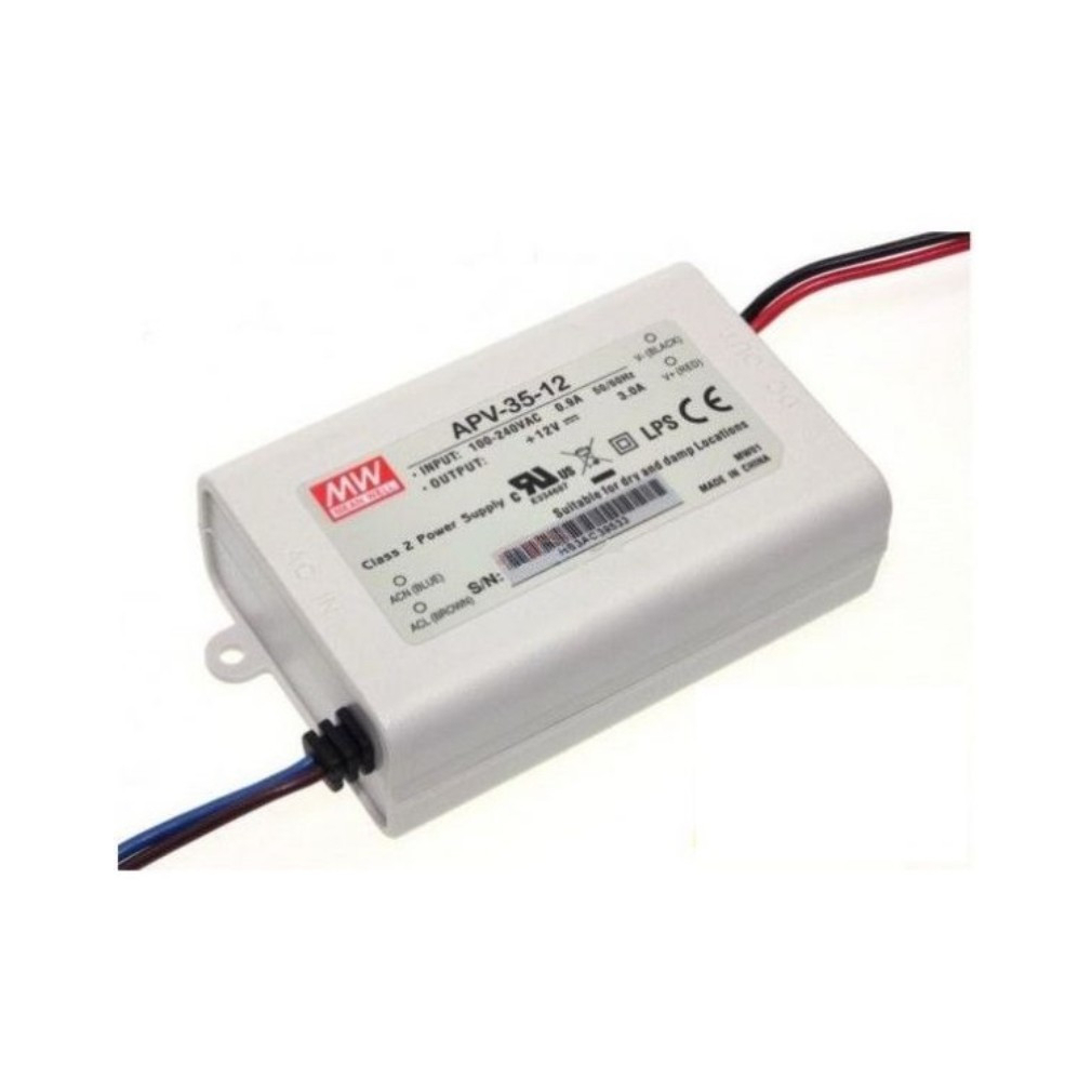 Egykimenetes Mean Well LED tápegység, APV-35-12\nVin: 90-264 VAC/127-370 VDC, Vout: 12 VDC / 0-3 A, P: 36 W