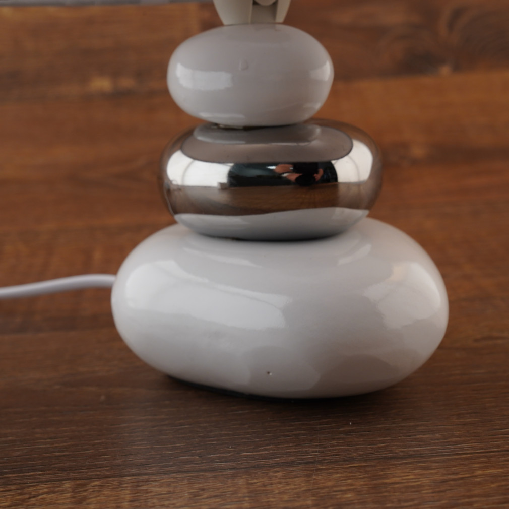 A Salem Rábalux 4949 éjjeli lámpa modern stílusú, fehér-króm kő torony dizájnnal és 25 cm magassággal rendelkezik. A lámpatest kerámiából és textilből készült, amely letisztult megjelenést biztosít. Egy darab E14 foglalattal szerelt, a fényforrás cserélhető, így a kívánt fényáram, színhőmérséklet és teljesítmény szabadon megválasztható. A lámpa nem szabályozható, működtetése zsinórkapcsolóval történik. A termék IP20 védettséggel rendelkezik, beltéri használatra alkalmas. Az átmérője 18 cm, csomagolási méretei 18x18x18 cm, tömege 0,5 kg. A fényforrás nem tartozék. Gyártója a Rábalux.