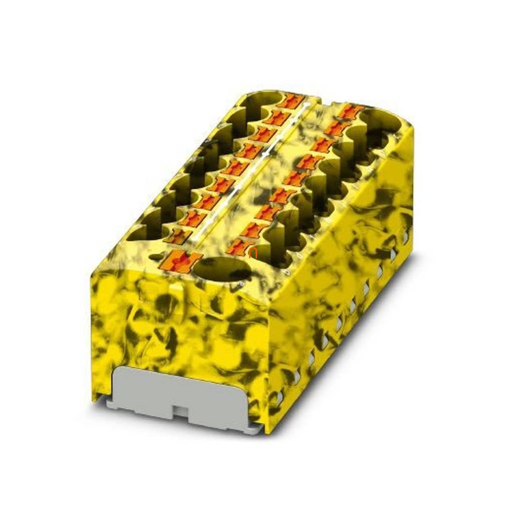 Elosztó blokk PTFIX 10/18X4-FE, 0,5-10mm2, 57/32 A 450V, fekete/sárga, hordozó nélkül 35 DIN sínre, rugós csatlakozás, 3273920
