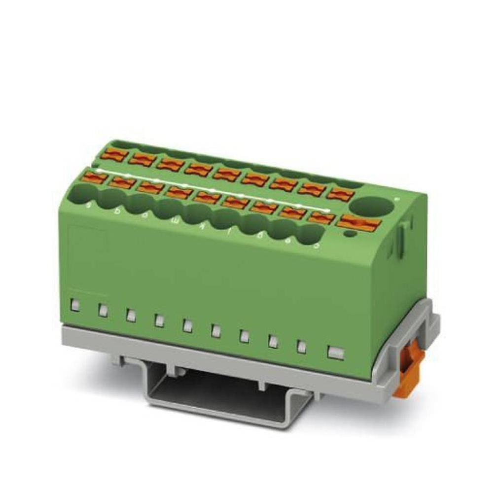 Elosztó blokk PTFIX 6/18X2,5-NS35 GN, 0,5-10mm2, 41/24 A 690V, zöld, rögzítés NS 35 DIN sínre keresztirányban, rugós csatlakozás, 3273118