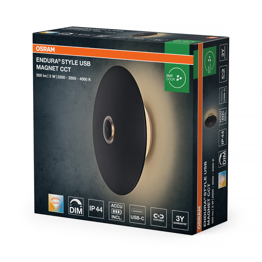 Osram Endura Style USB Magnet kültéri szabályozható fali LED lámpa, 3 W, 210 lm, 2500-3000-4000 K
