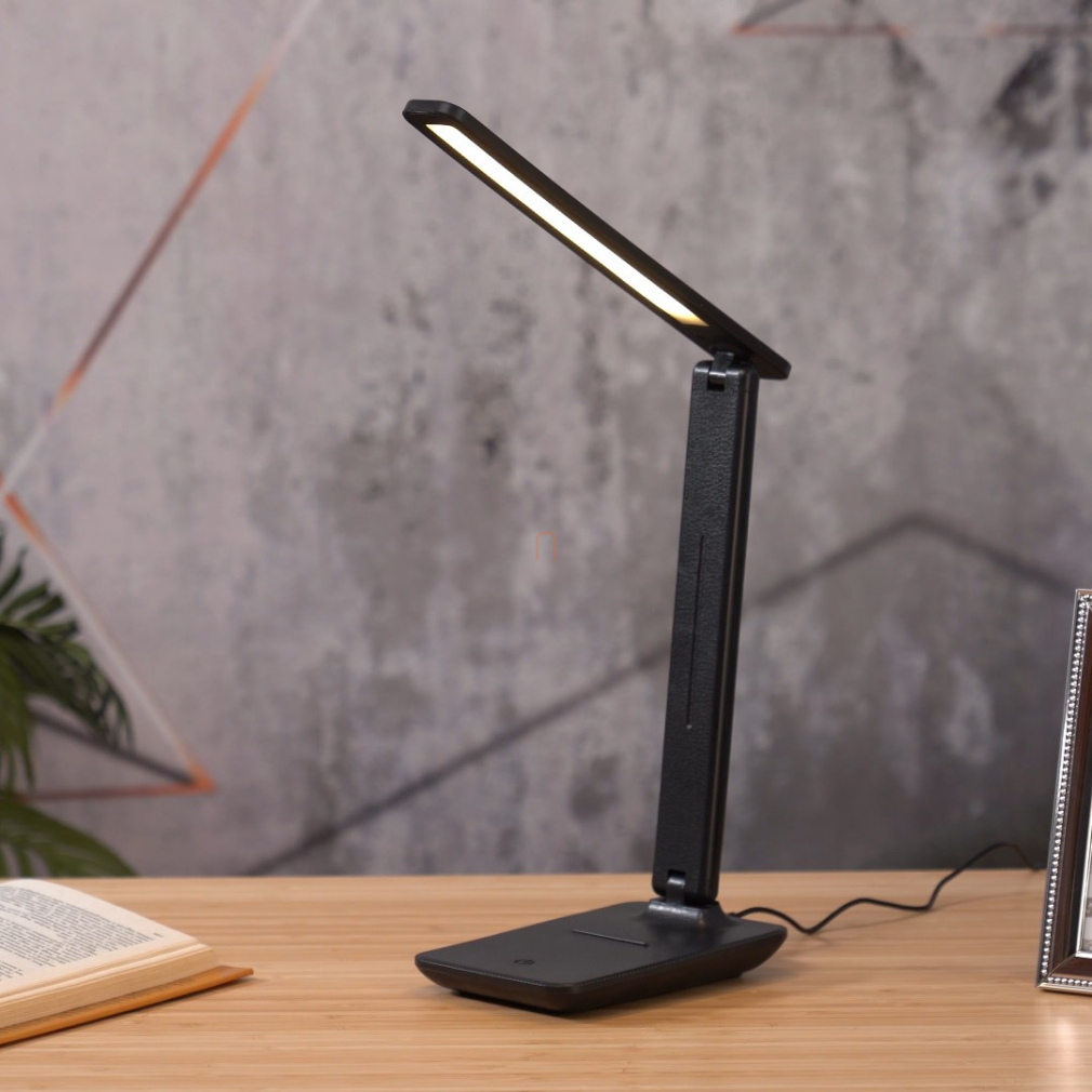 Érintőkapcsolóval szabályozható íróasztali LED lámpa, tölthető, állítható - Brighton Globo 58439SA - szabályozható fényerősség, 2700/6500 K, 143 lm, 4 W, 0.8 méteres kábel, akkumulátoros