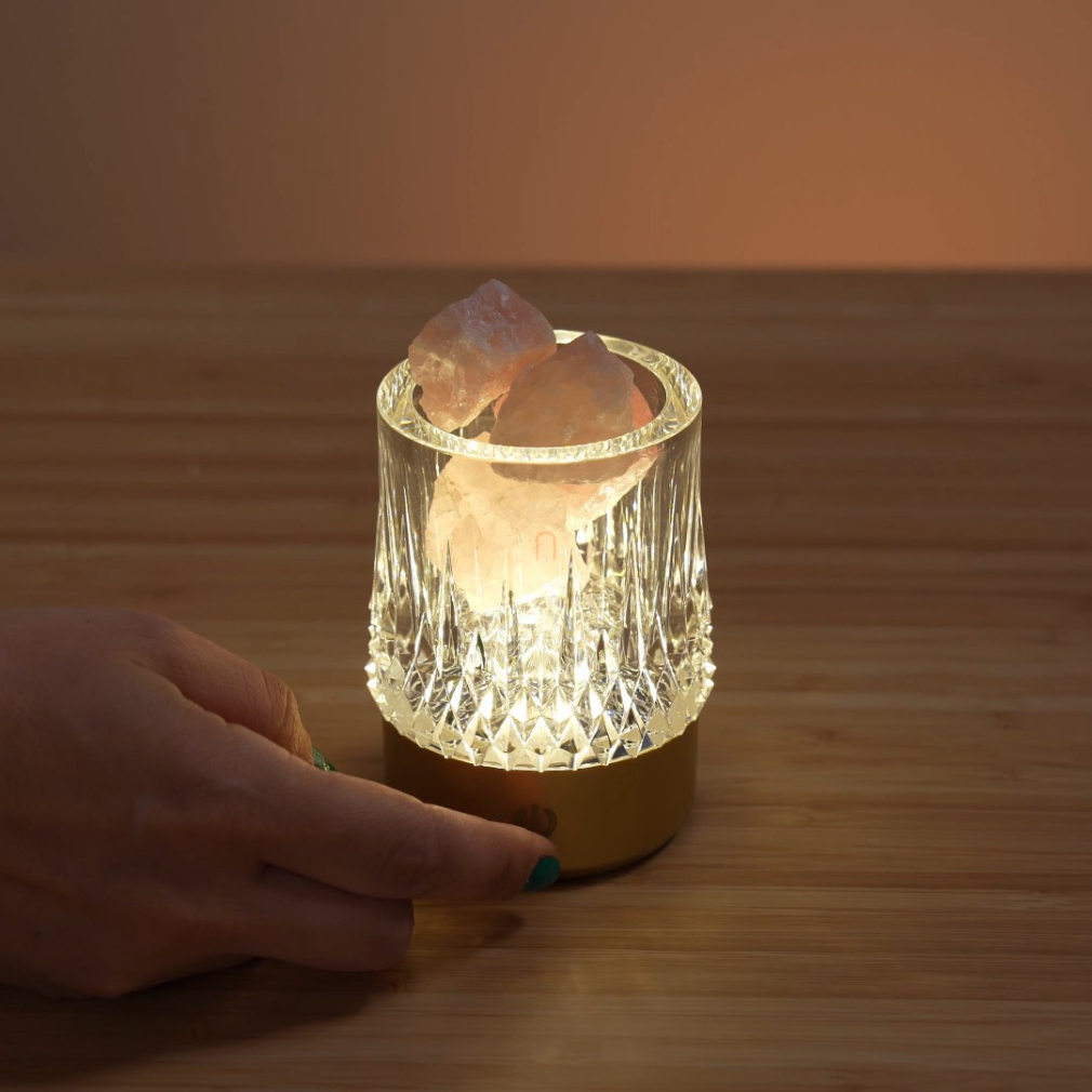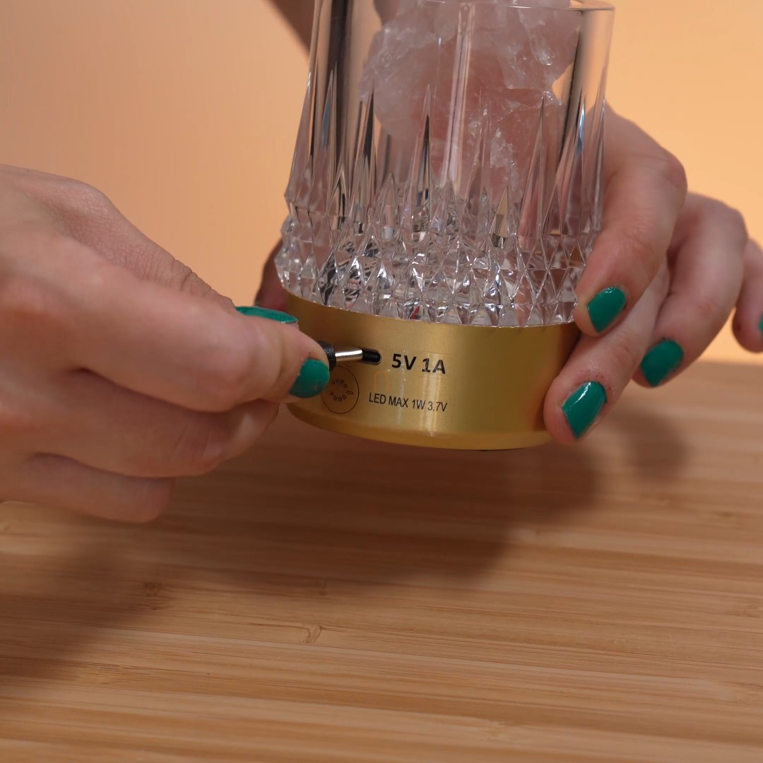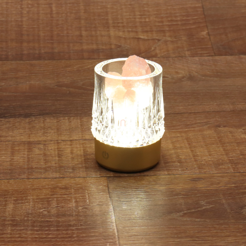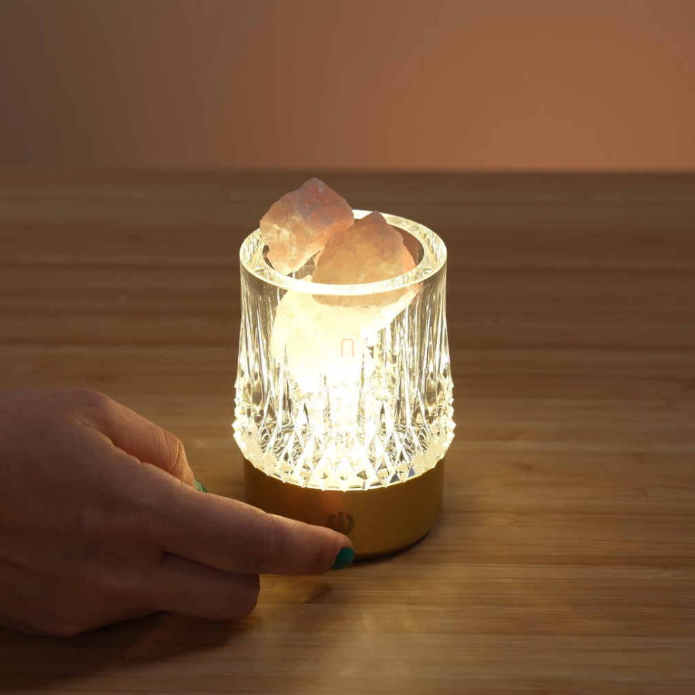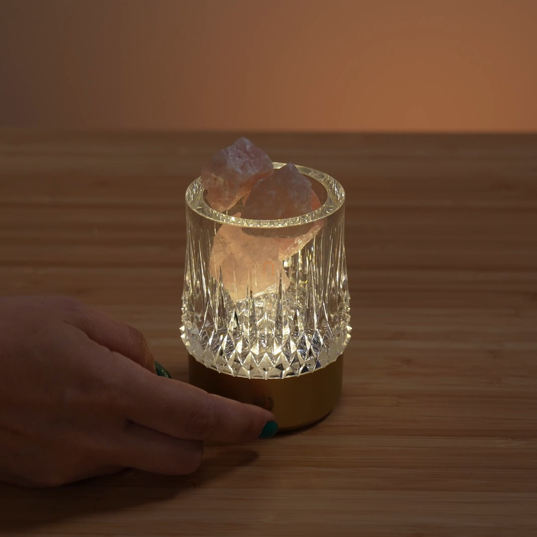 Érintőkapcsolós asztali LED dekor lámpa, tölthető, sókristály hatású - Lizzy Globo 21044 - szabályozható fényerősség, 3000 K, 95 lm, 1 W, 1 méteres kábel, akkumulátoros