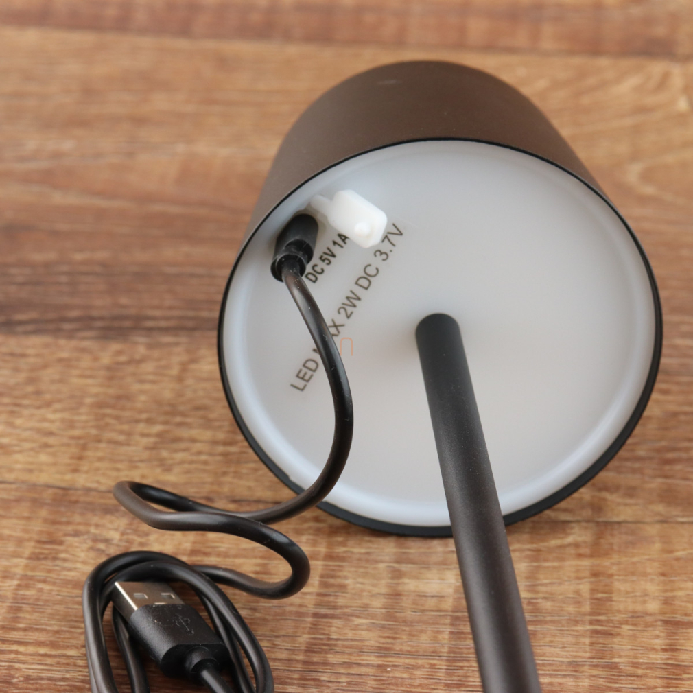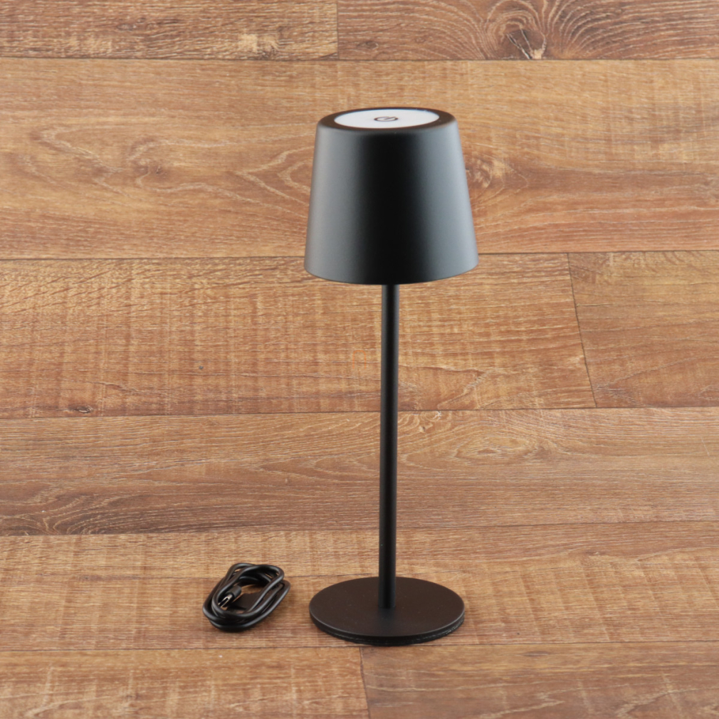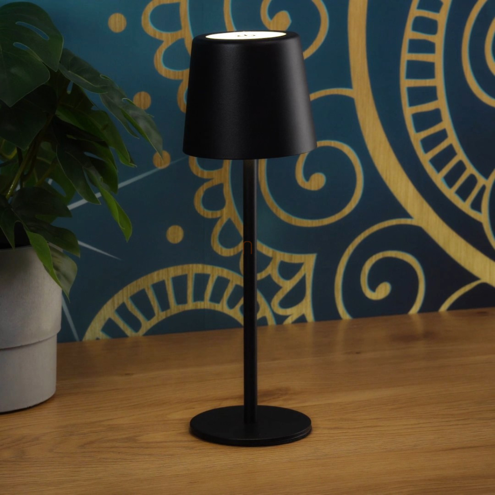 Érintőkapcsolóval szabályozható asztali LED lámpa, 28 cm, tölthető, fekete színben - Vancouver Globo 58482B - szabályozható fényerősség, 3000/4500/6000 K, 50 lm, 1,2 W, 0.8 méteres kábel, akkumulátoros