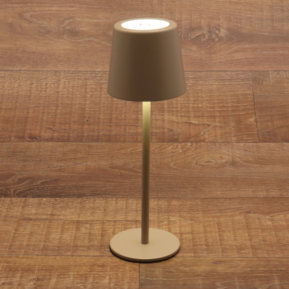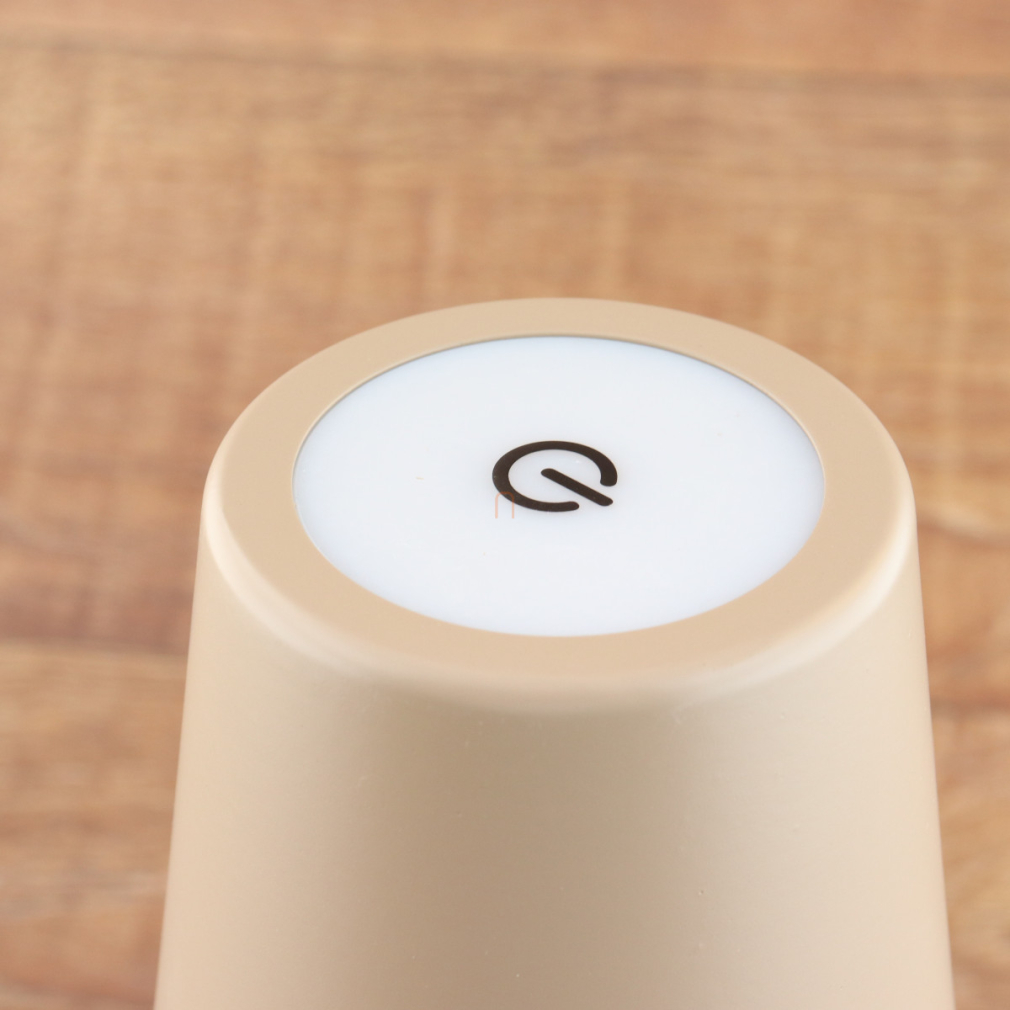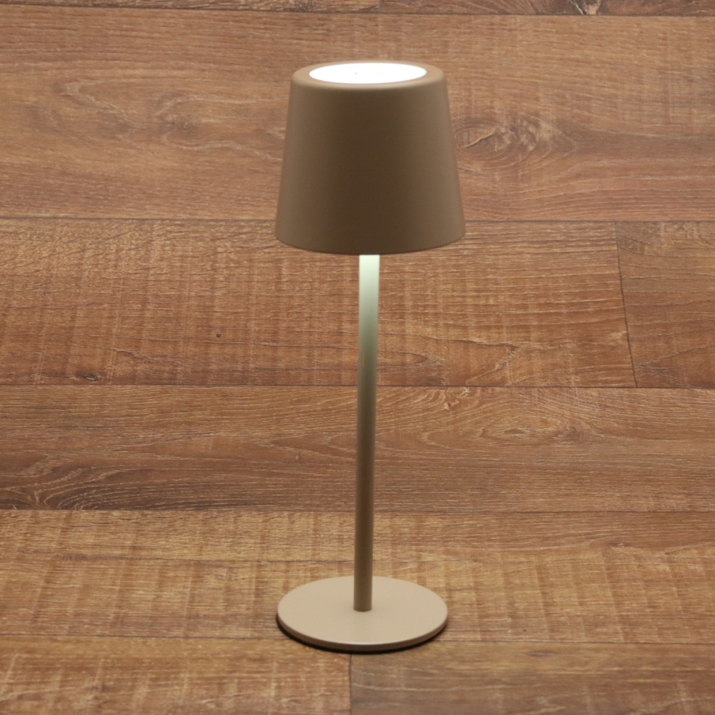 Érintőkapcsolóval szabályozható asztali LED lámpa, 28 cm, tölthető, barna színben - Vancouver Globo 58482S - szabályozható fényerősség, 3000/4500 K, 50 lm, 1,2 W, 0.8 méteres kábel, akkumulátoros