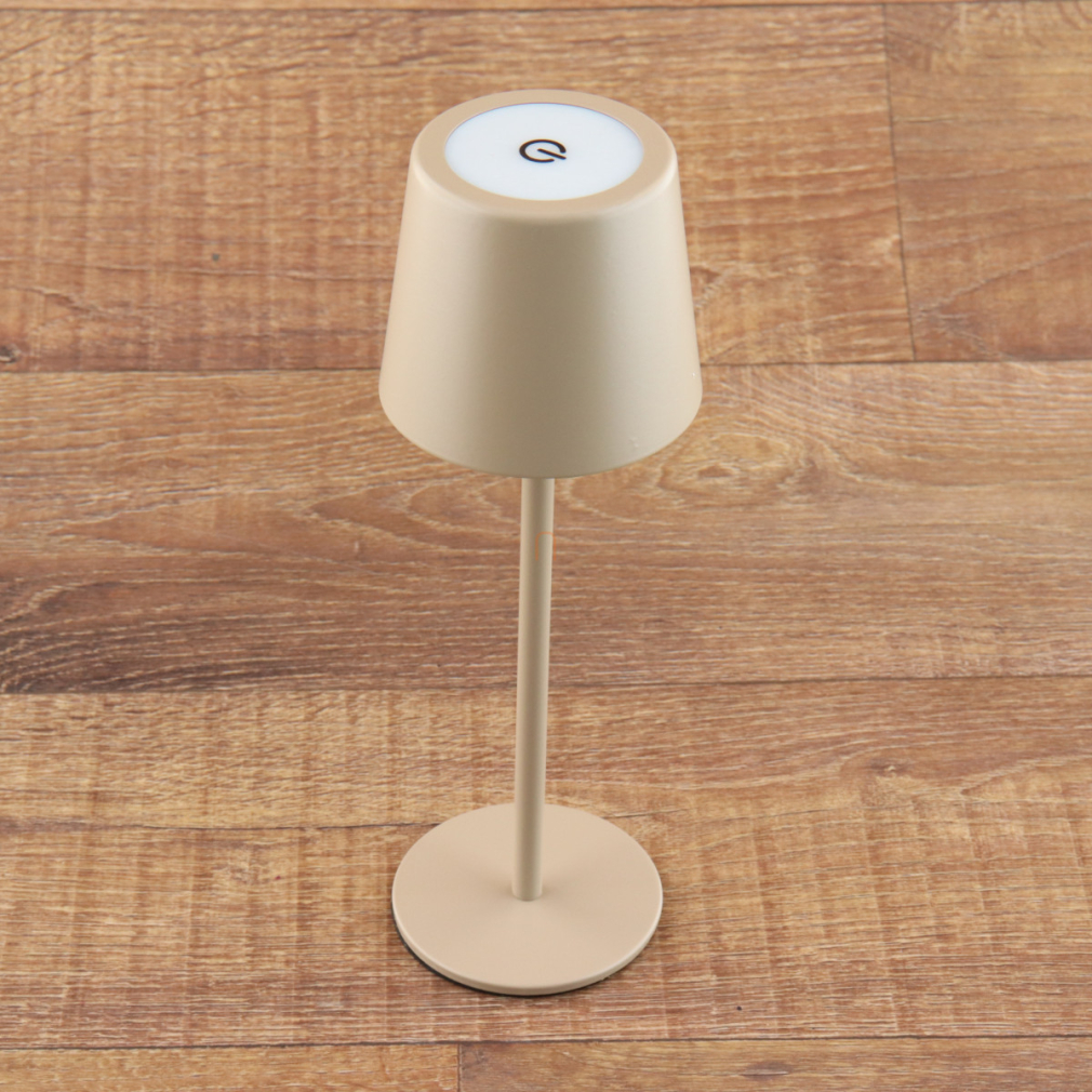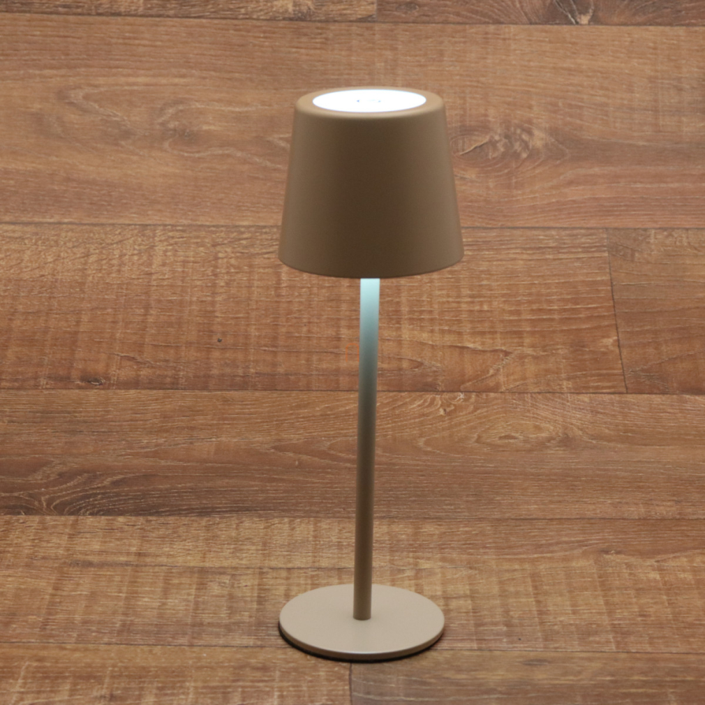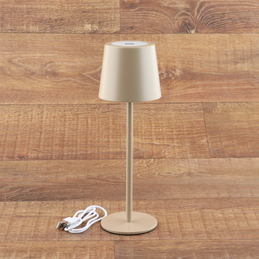 Érintőkapcsolóval szabályozható asztali LED lámpa, 28 cm, tölthető, barna színben - Vancouver Globo 58482S - szabályozható fényerősség, 3000/4500 K, 50 lm, 1,2 W, 0.8 méteres kábel, akkumulátoros
