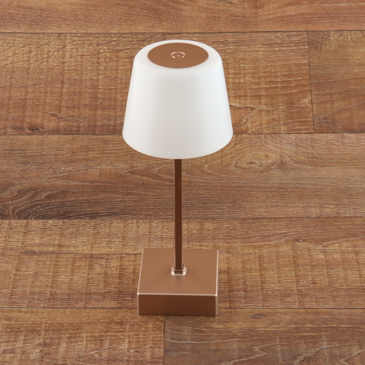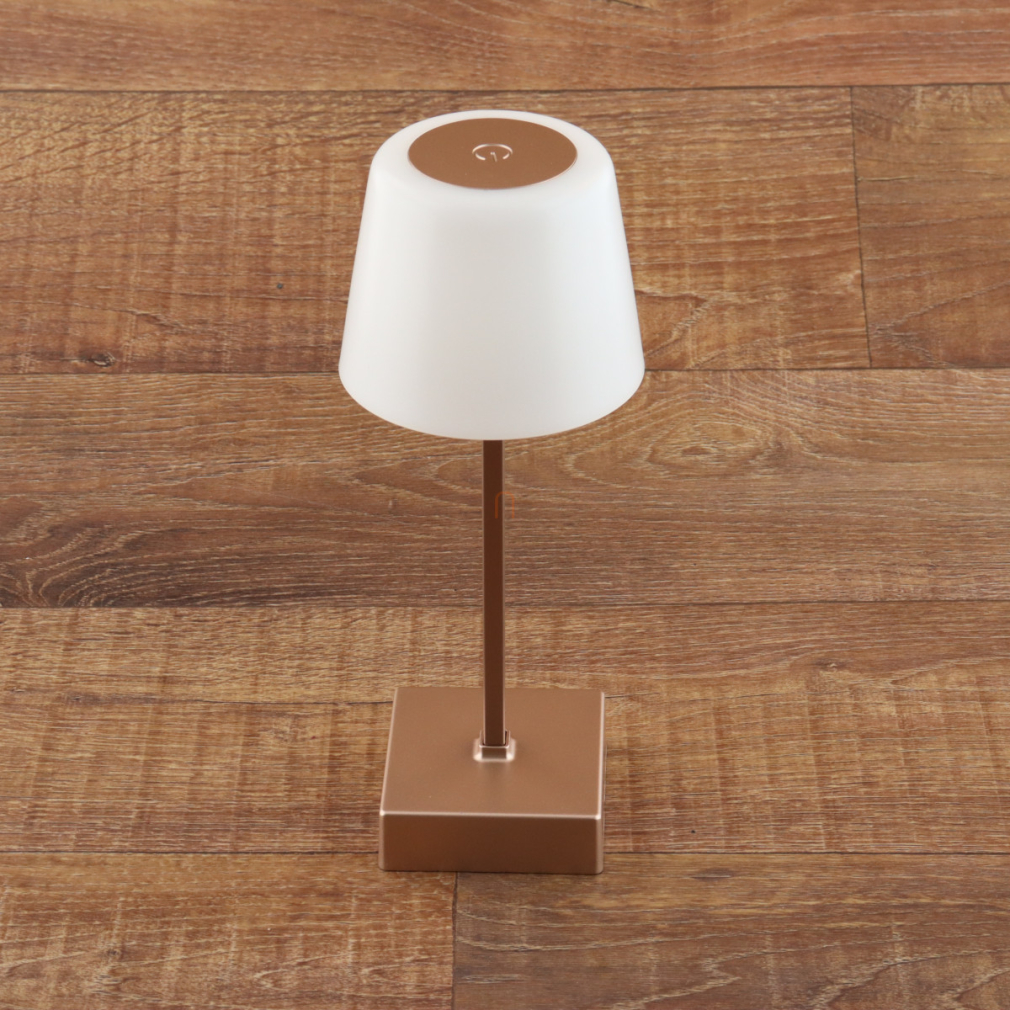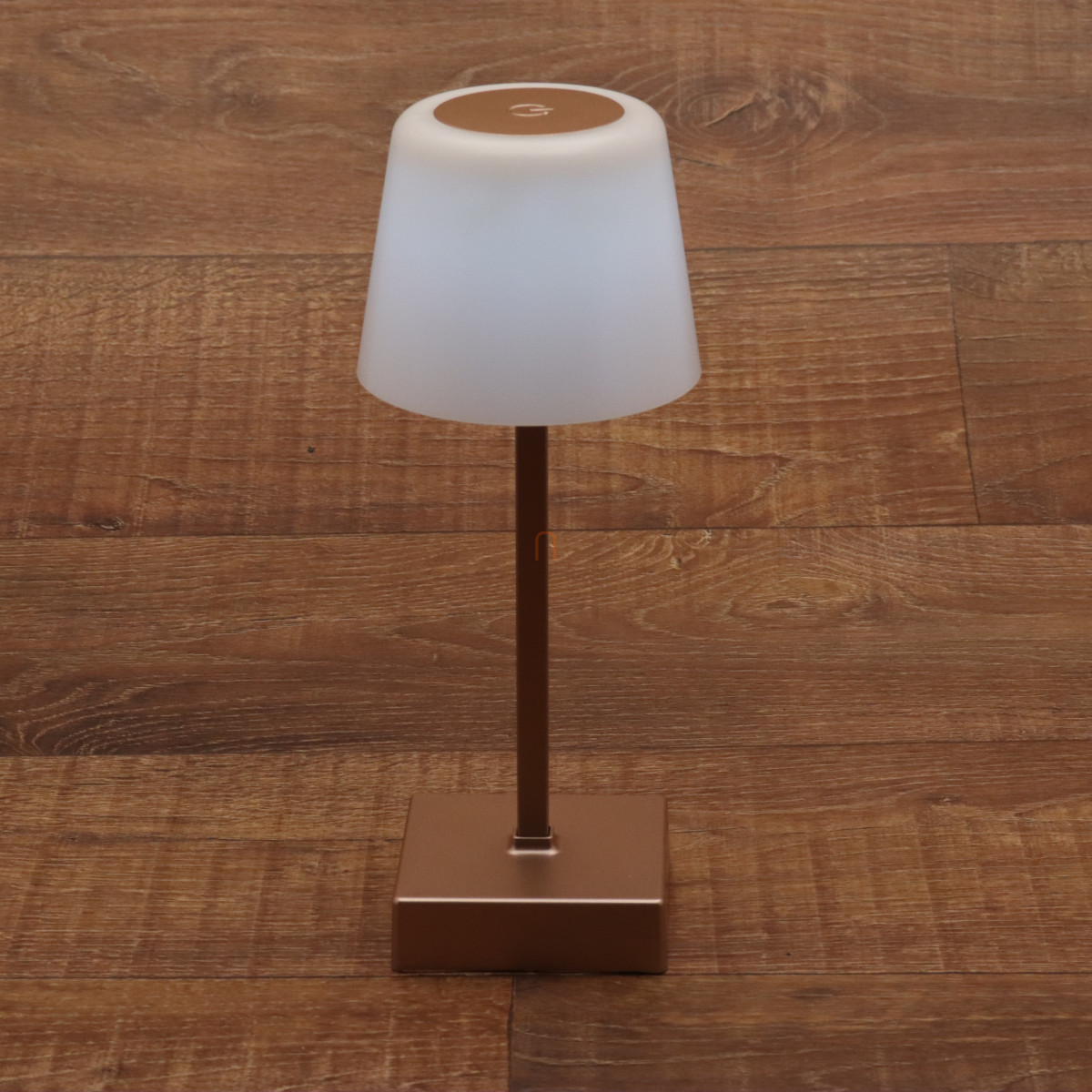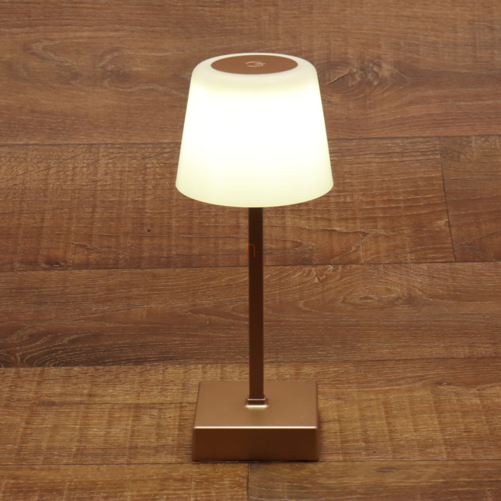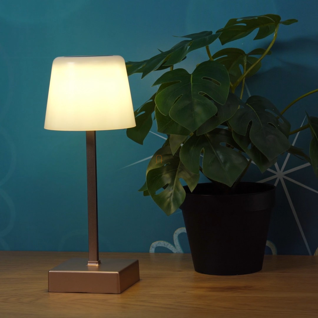 Érintőkapcsolóval szabályozható asztali LED lámpa, 25 cm, tölthető, pezsgőszín - Xayden Globo 28061CH - szabályozható fényerősség, 3000/5700 K, 100 lm, 2 W, 0.8 méteres kábel, akkumulátoros