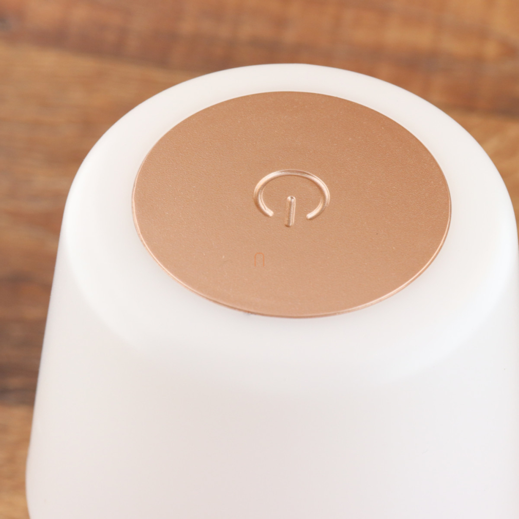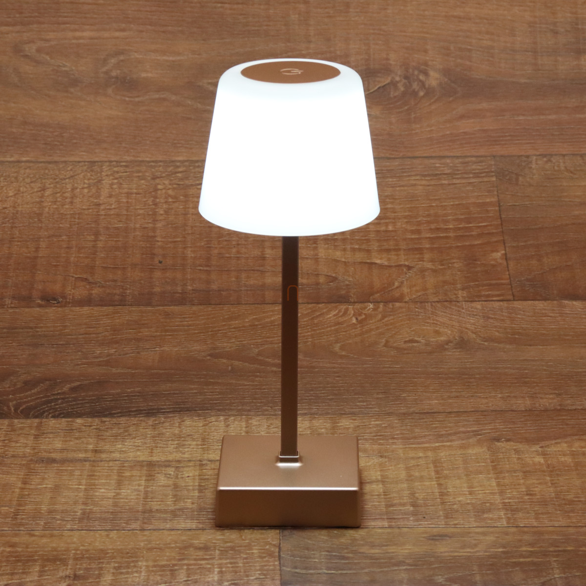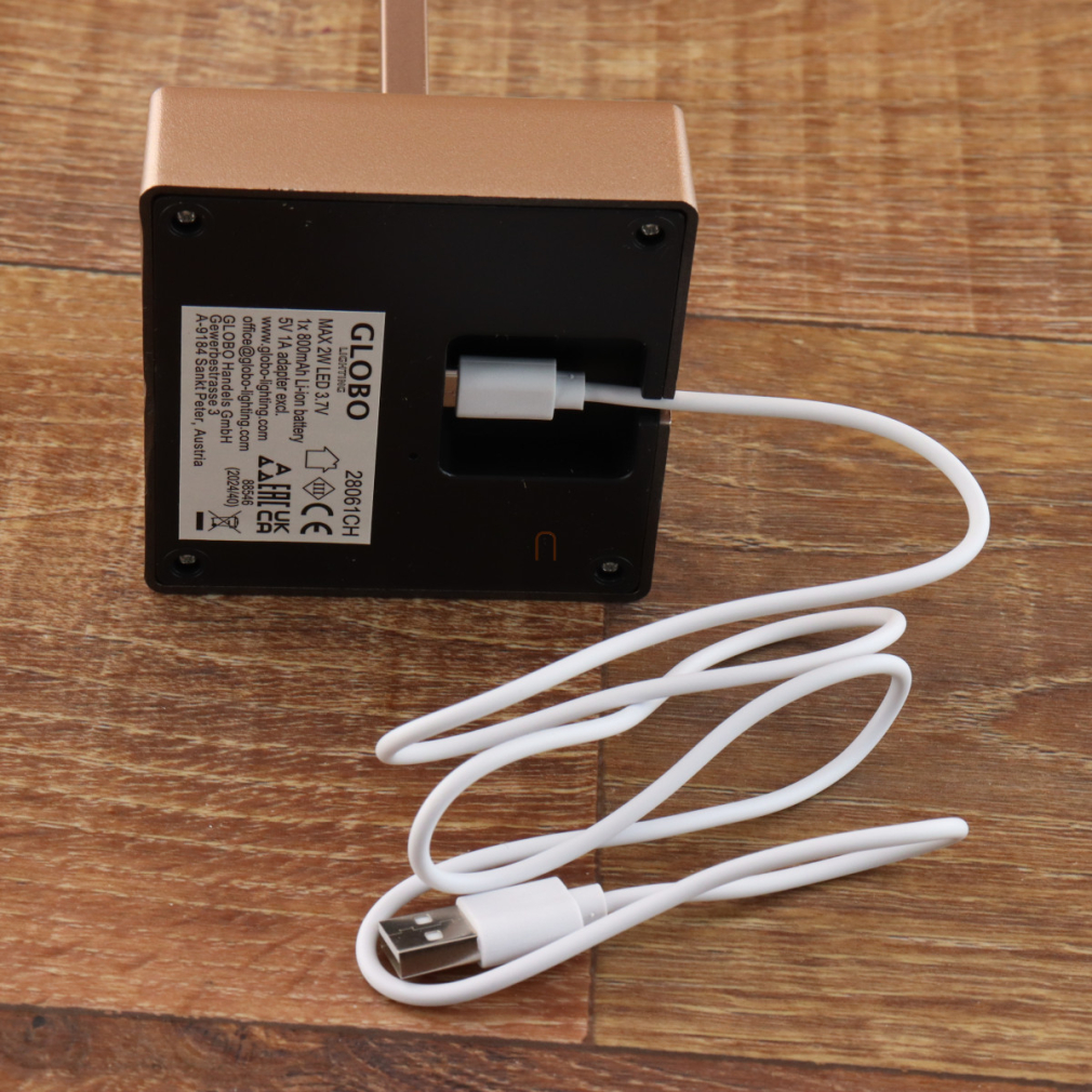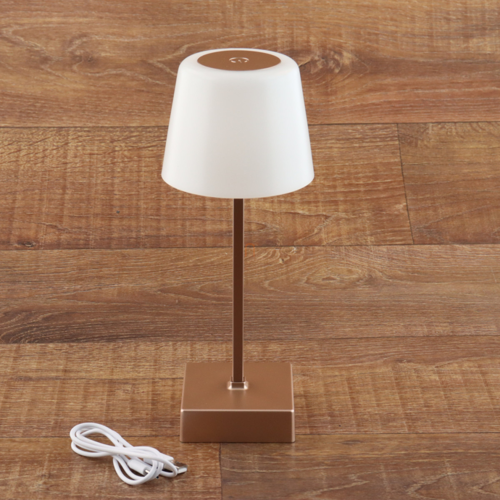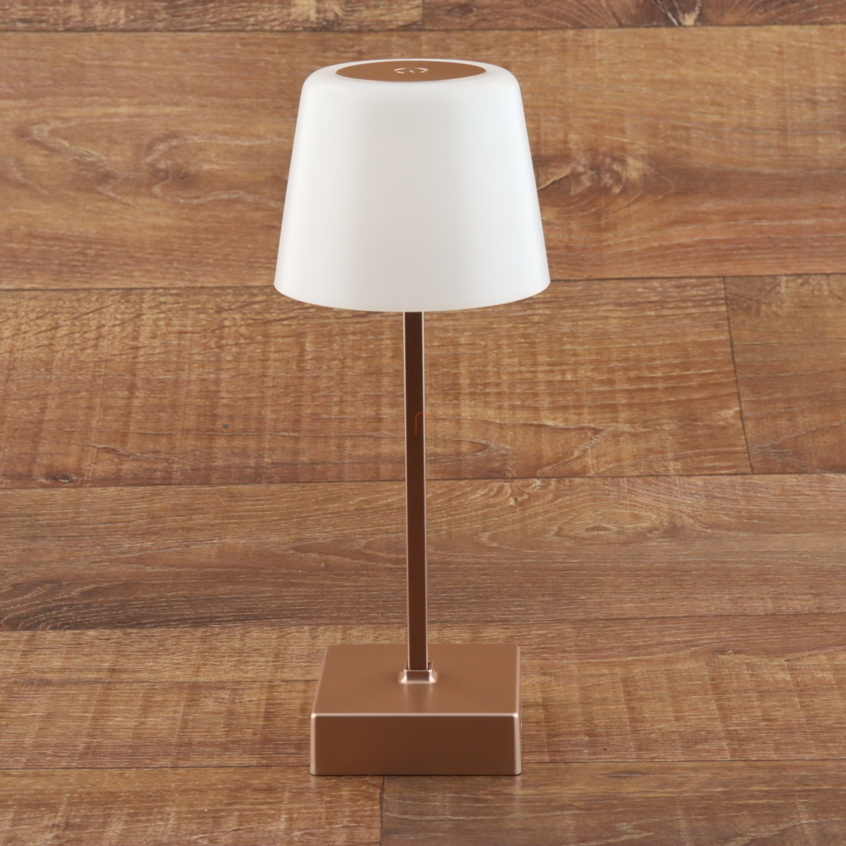 Érintőkapcsolóval szabályozható asztali LED lámpa, 25 cm, tölthető, pezsgőszín - Xayden Globo 28061CH - szabályozható fényerősség, 3000/5700 K, 100 lm, 2 W, 0.8 méteres kábel, akkumulátoros