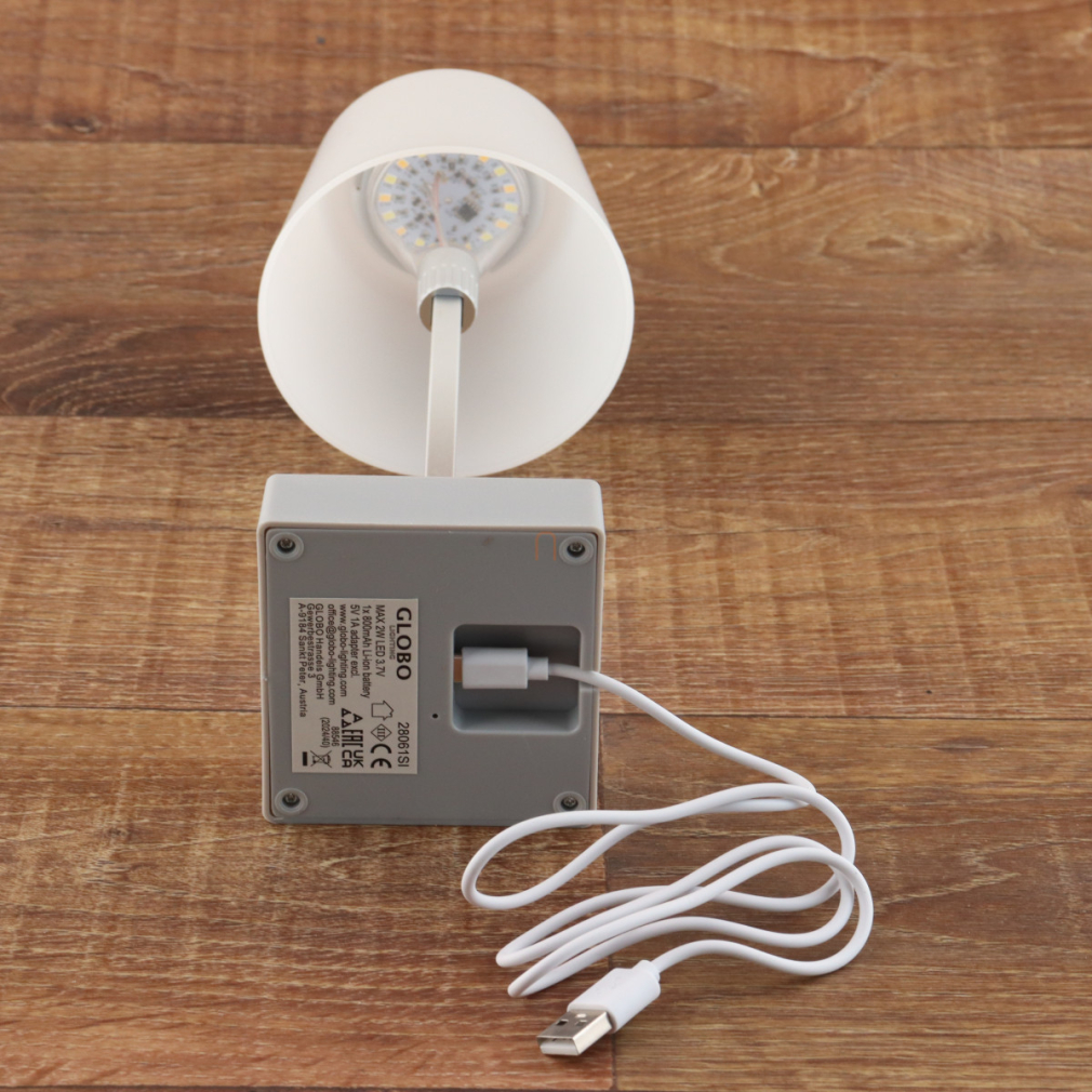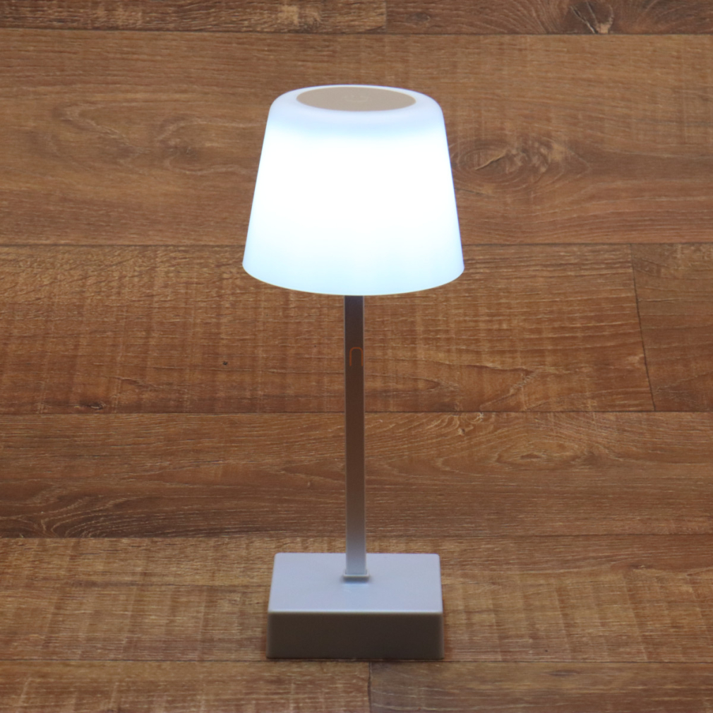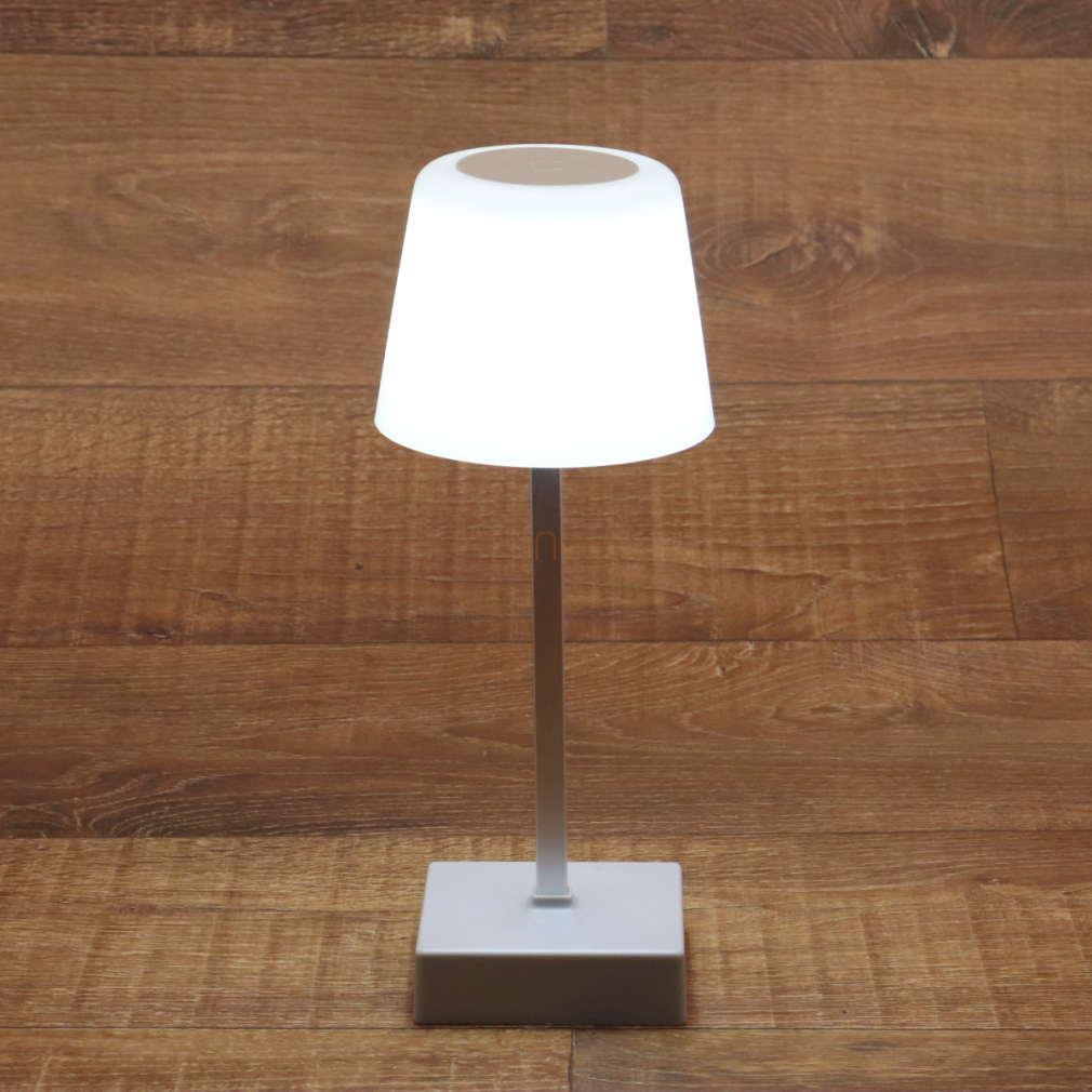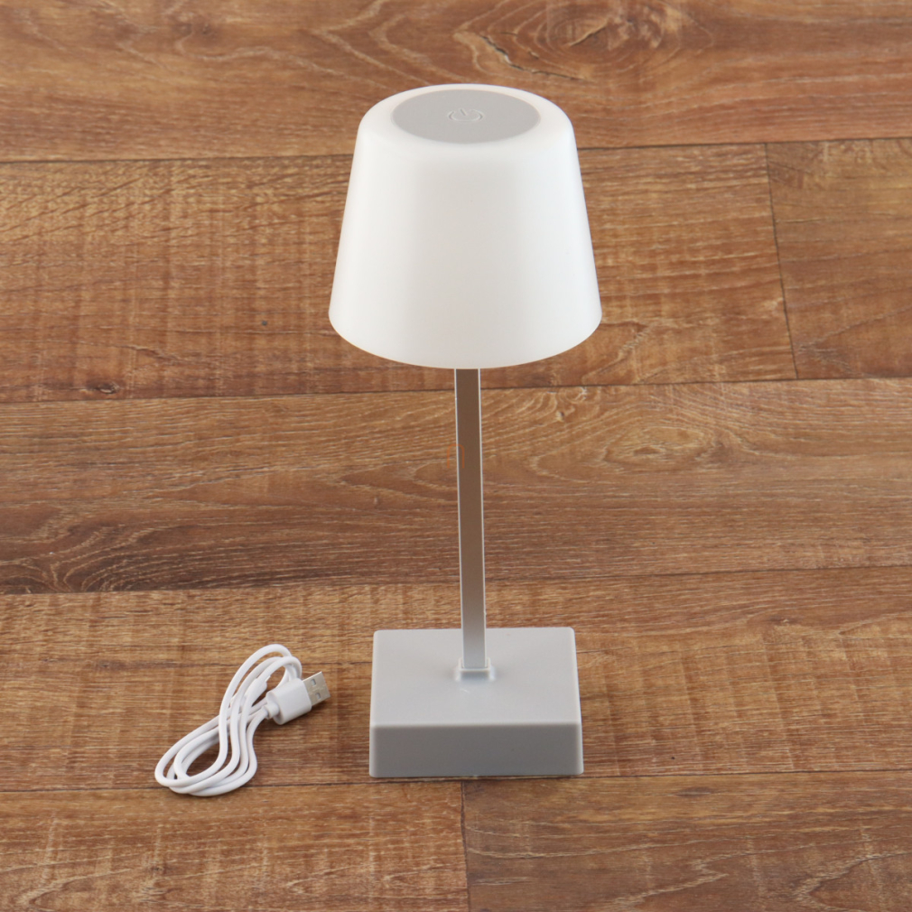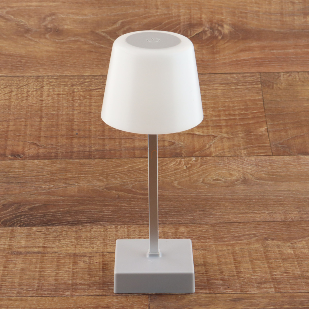 Érintőkapcsolóval szabályozható asztali LED lámpa, 25 cm, tölthető, ezüst színben - Xayden Globo 28061SI - szabályozható fényerősség, 3000/6000 K, 100 lm, 2 W, 0.8 méteres kábel, akkumulátoros