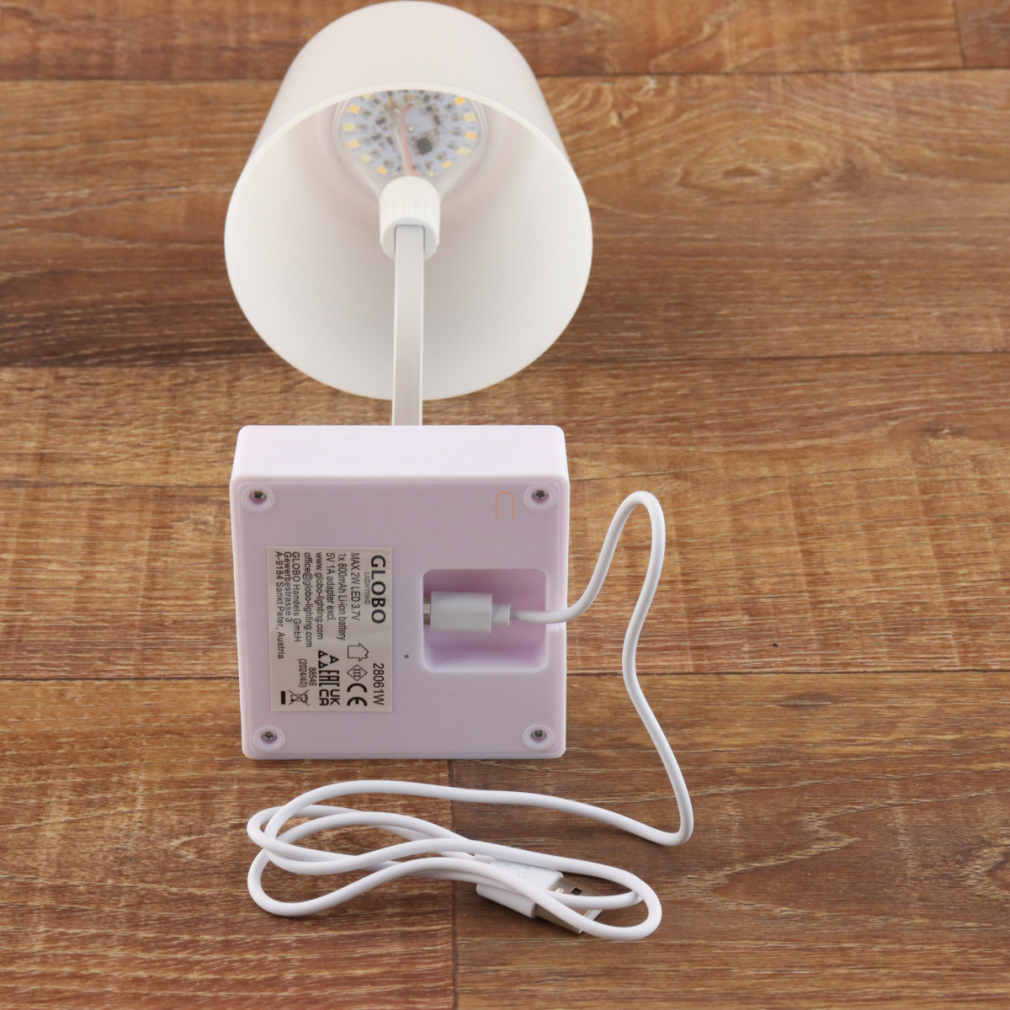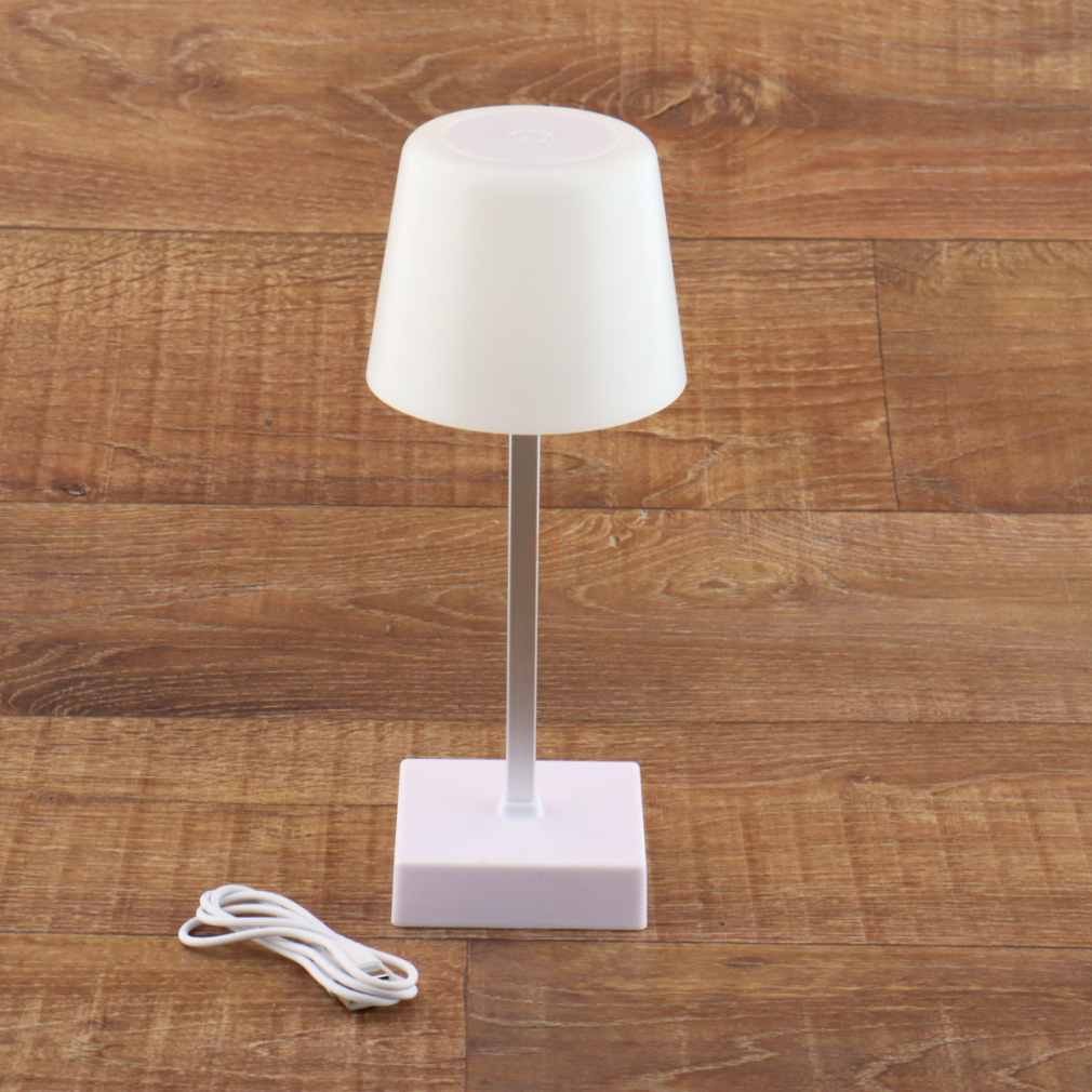 Érintőkapcsolóval szabályozható asztali LED lámpa, 25 cm, tölthető, fehér színben - Xayden Globo 28061W - szabályozható fényerősség, 3000/6500 K, 100 lm, 2 W, 0.8 méteres kábel, akkumulátoros