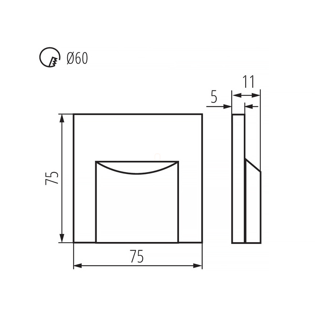 A LED lépcsővilágító, szögletes 0,8W, 4000K, 15lm, fekete - Ernius Kanlux 33333 egy modern, energiatakarékos világítási megoldás, amelyet kifejezetten lépcsőfelületek megvilágítására terveztek. A 0,8 wattos LED modul 15 lumen fényáramot biztosít, 4000 K-es hidegfehér színhőmérséklettel, amely tiszta, semleges fényt ad. A lámpatest 75 mm hosszúságú és magasságú, valamint 11 mm szélességű, így kompakt kialakítása révén diszkréten illeszkedik a falba. Műanyag háza ellenálló, a kivágási méret 60 mm, így egyszerűen beépíthető. A termék 12 V névleges feszültséggel működik, tápegységet nem tartalmaz. A beépített LED modulnak köszönhetően nincs szükség izzócserére. Fekete színű kivitele modern megjelenést biztosít bármilyen belső térben.