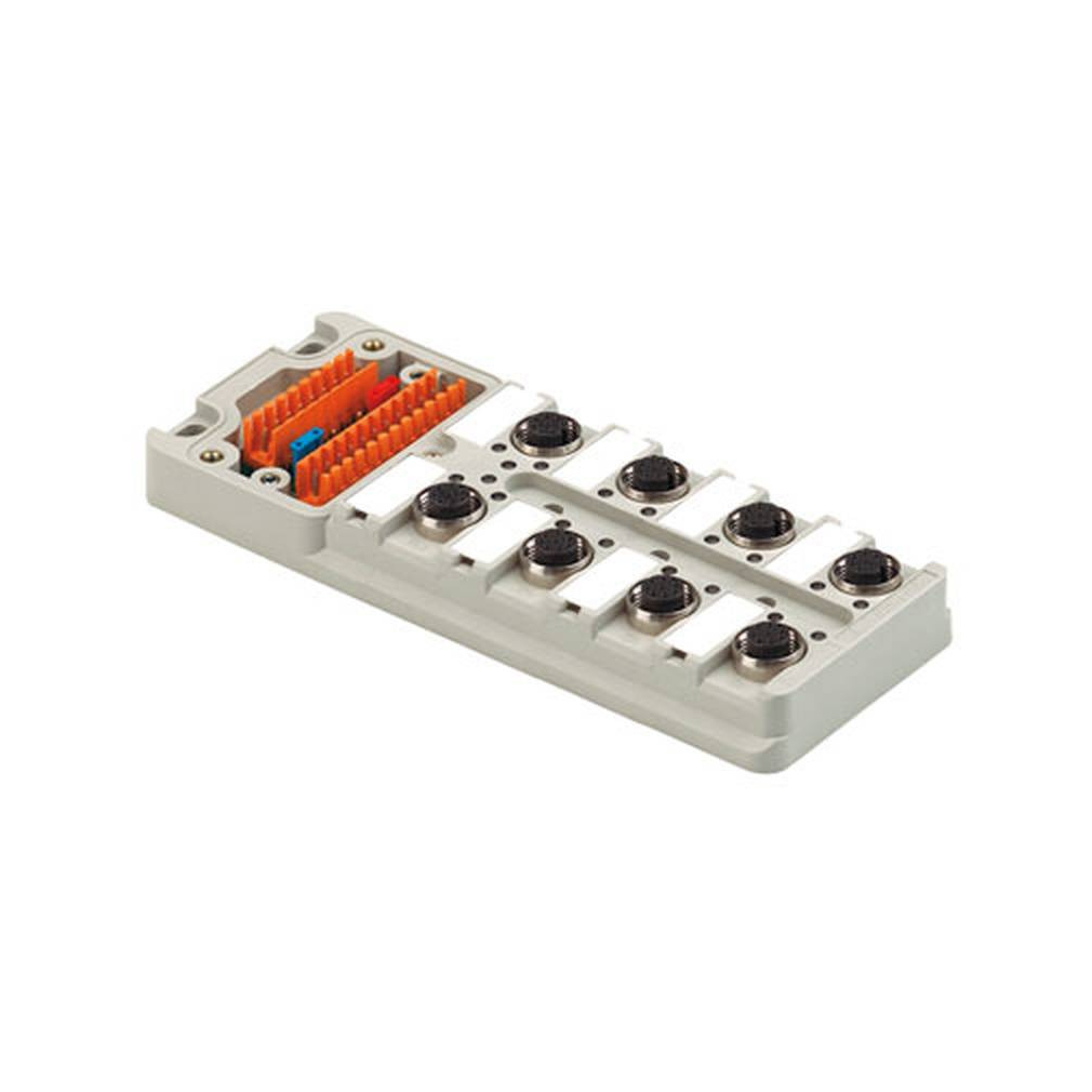 Szenzor-aktuátor passzív elosztó (kábel nélkül), Aljzatház, Kupakos változat, Érintkező aljzatok száma: 8, Pólusszám: 5, M12