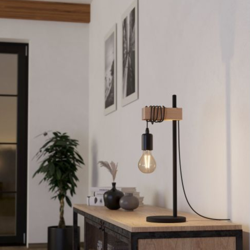 A Townshend Eglo 43515 fa asztali lámpa egy 50 cm magas, vintage stílusú lakásvilágítási megoldás, amelyet az Eglo márka gyárt. A lámpatest fő anyagai az acél és a fa, színvilága fekete és natúr fa kombinációjából áll. Egy darab E27-es foglalattal rendelkezik, amelybe cserélhető fényforrás helyezhető, a fényforrás nem tartozék. A lámpa zsinórkapcsolóval működtethető, nem szabályozható, védettsége IP20-as. A termék tömege 1,7 kg, méretei 175 mm hosszúság, 155 mm szélesség és 500 mm magasság. A csomagolás méretei: 8 cm szélesség, 17 cm hosszúság, 52 cm magasság. A lámpatestet az EGLO forgalmazza, logisztikai kódja 43515.