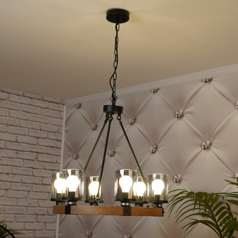 Fa csillár üvegbúrákkal, 6 foglalattal - Lila Globo 15555-6H