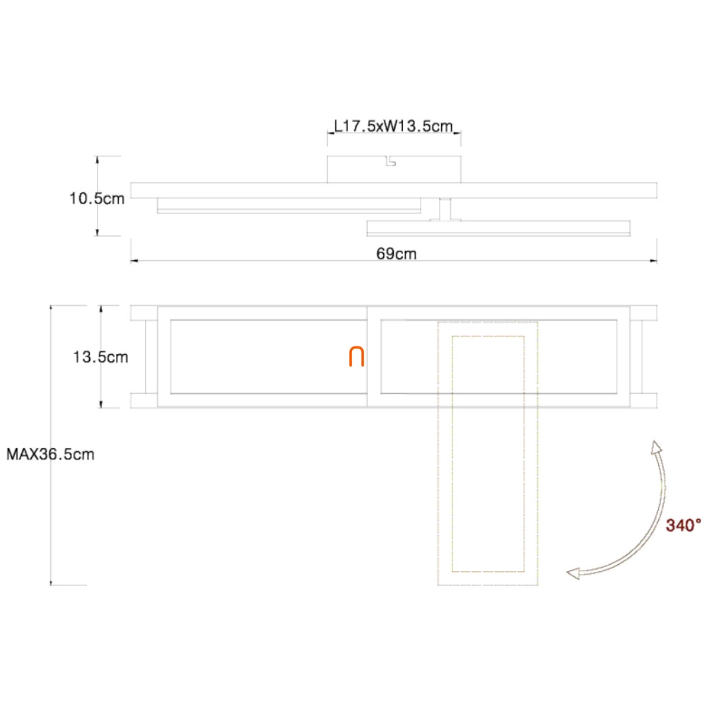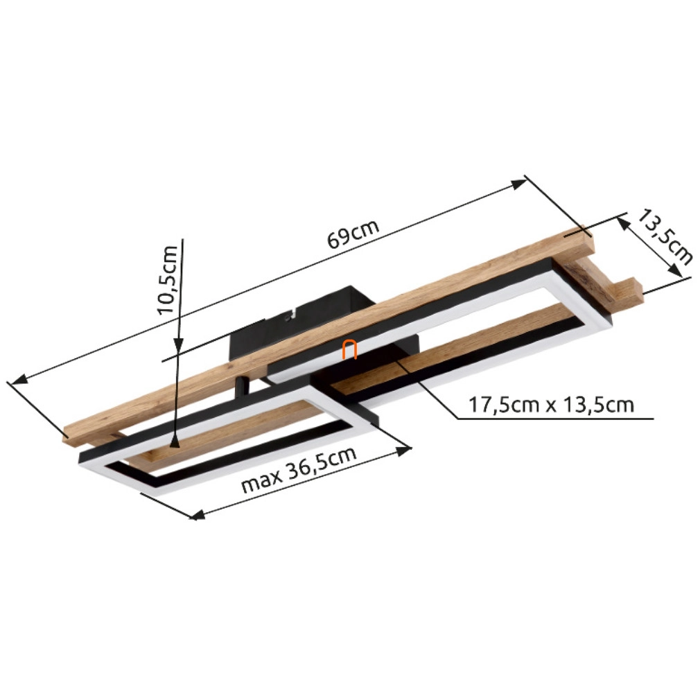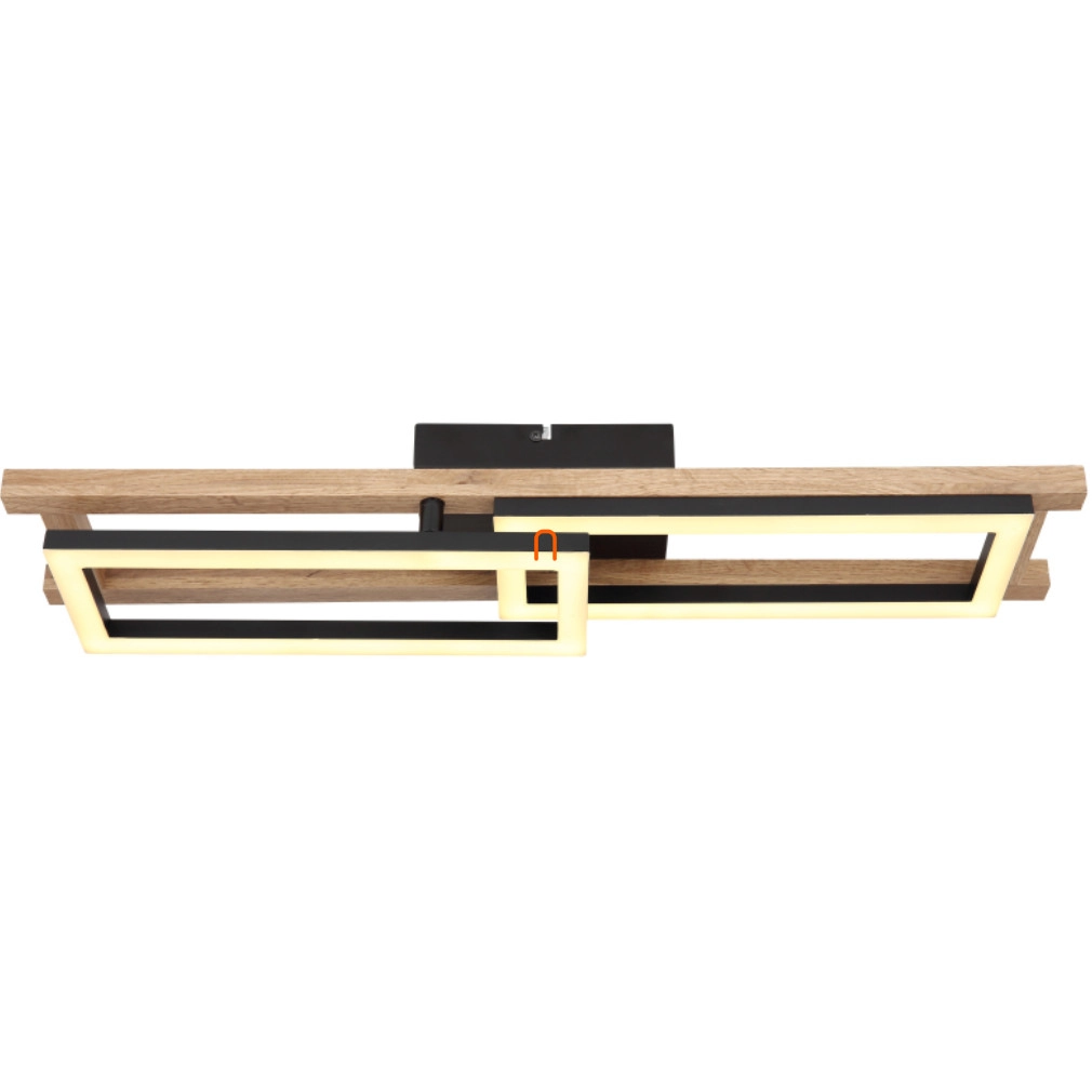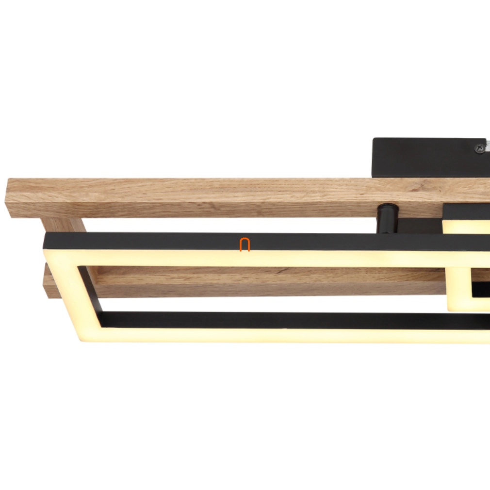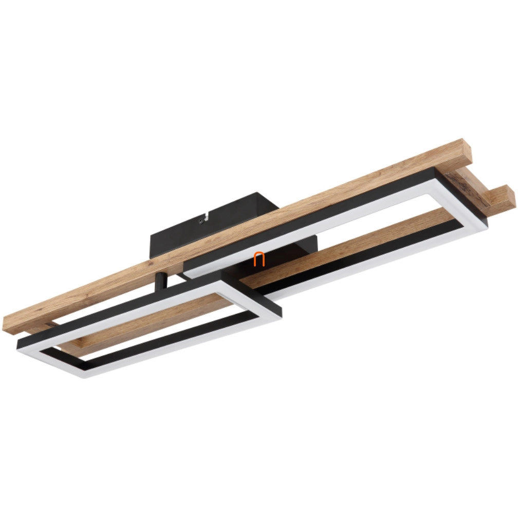 A Fa hatású mennyezeti LED lámpa, Illa Globo 67266D modell, modern technológiát és esztétikus megjelenést ötvöz. A lámpatest fő anyaga fém és műanyag, matt fekete, opál és sötét barna színkombinációval, amely fa hatást kölcsönöz a terméknek. A beépített LED modul 30 W névleges teljesítménnyel működik, 230 V feszültségen, és 850 lumen fényáramot biztosít melegfehér, 3000 K színhőmérsékletű fénykibocsátással. A lámpa IP20 védettségi besorolással rendelkezik, így beltéri használatra alkalmas. Méretei 690 mm hosszúság, 365 mm szélesség és 105 mm magasság. A lámpatest tartalmazza a fényforrást, így azonnal használatba vehető. A termék súlya 1,58 kg, csomagolási méretei 15 cm szélesség, 17 cm hosszúság és 75 cm magasság.