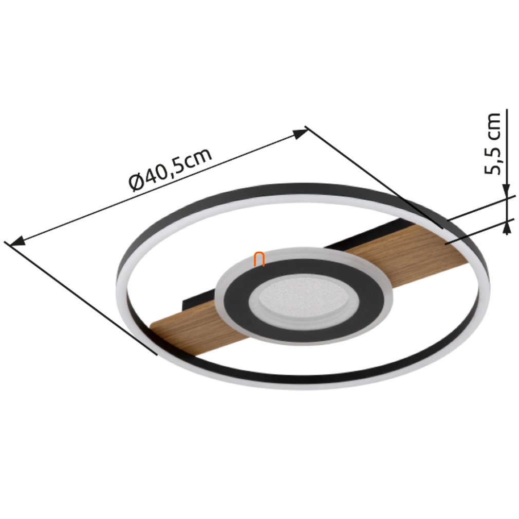 A Pikara Globo 67323-24 fa hatású mennyezeti LED lámpa egy modern világítási megoldás, amely 24 W teljesítményű integrált LED modullal rendelkezik, 800 lumen fényáramot biztosítva. A lámpatest színhőmérséklete 3000 Kelvin, amely melegfehér fénnyel világítja meg a helyiséget. A termék kialakításában a matt fekete, fa és opál színek harmonizálnak, a lámpatest anyaga fém, alumínium és kristály hatású műanyag elemekből áll. A mennyezeti lámpa átmérője 405 mm, magassága 55 mm, védettségi besorolása IP20, így beltéri használatra alkalmas. A névleges feszültség 230 V, a fényforrás nem cserélhető, mivel beépített LED modult tartalmaz. A termék tömege 1,1 kg, csomagolási méretei 46x46x8 cm. A Pikara Globo 67323-24 lámpa esztétikus fa hatású megjelenésével és kristály hatású díszítésével egyedi megjelenést kölcsönöz bármely helyiségnek, miközben energiatakarékos LED technológiával működik.