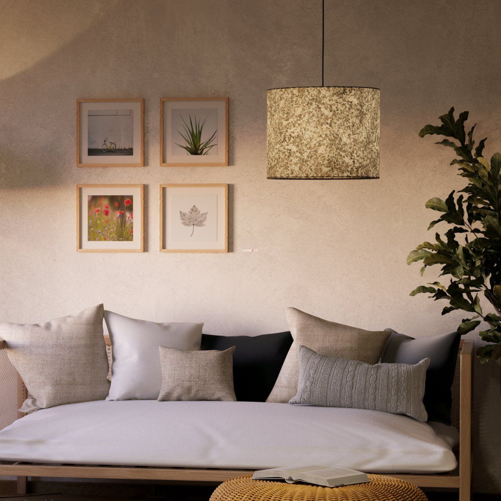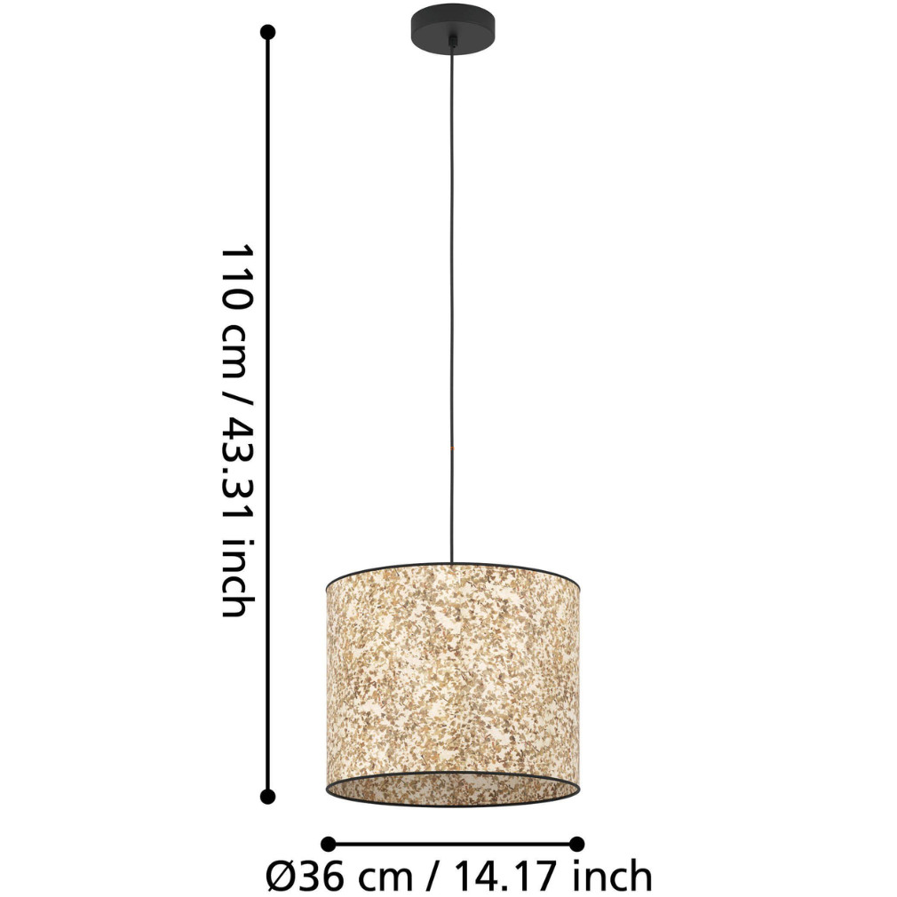 A Falevél mintás függesztett lámpa - Butterburn Eglo 43936 egy modern lakásvilágítási megoldás, amelyet az EGLO gyárt. A lámpatest acél és textil anyagokból készül, fekete, bézs és zöld színkombinációban. A 360 mm átmérőjű és 1100 mm magasságú függesztett lámpa egy darab E27 foglalattal rendelkezik, amely cserélhető fényforrással használható. A termék nem tartalmaz fényforrást, így a felhasználó szabadon választhatja meg a kívánt fényáramot, fényszínt, teljesítményt és színhőmérsékletet. A lámpa IP20 védettségi besorolással rendelkezik, így beltéri használatra alkalmas. A csomagolás méretei 37 cm szélesség, 30 cm hosszúság és 37 cm magasság, a termék tömege 0,558 kg. A dekoratív falevél mintázat egyedi megjelenést kölcsönöz a lámpának, amely jól illeszkedik modern és természetközeli enteriőrökbe.