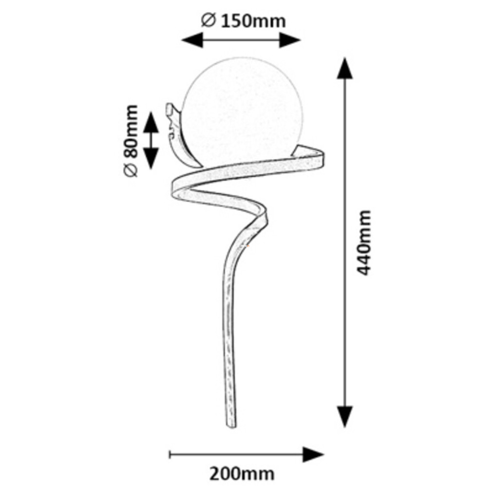 A Sarabi Rábalux 71136 fali lámpa arany színű spirál kialakításával és fehér üvegburájával modern megjelenést biztosít a belső terek számára. A lámpatest 1 db E27 foglalattal rendelkezik, amely lehetővé teszi különféle cserélhető fényforrások használatát, így a fényáram, a fényszín, a teljesítmény és a színhőmérséklet is szabadon választható. A lámpa anyaga fém és üveg, védettségi szintje IP20, amely beltéri használatra teszi alkalmassá. Átmérője 150 mm, magassága 440 mm, tömege 0,605 kg. A csomagolás méretei: 26 cm szélesség, 17 cm hosszúság, 40 cm magasság. A termék nem tartalmaz fényforrást, a gyártó a Rábalux.