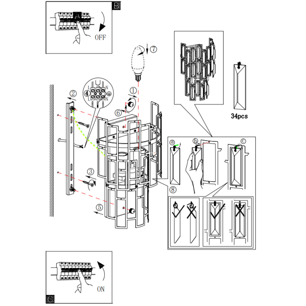 A Calmeilles Eglo 39615 fali lámpa három E14 foglalattal rendelkezik, amely lehetővé teszi cserélhető fényforrások alkalmazását. Az art deco stílusú lámpatest sárgaréz és áttetsző kristály anyagokból készült, így elegáns megjelenést biztosít bármely lakótérben. A termék méretei 215 mm hosszúság, 130 mm szélesség és 330 mm magasság, össztömege 2,54 kg. A lámpa nem tartalmaz fényforrást, a fényáram, fényszín, teljesítmény és színhőmérséklet a behelyezett izzóktól függ. A lámpatest nem szabályozható, IP20 védettséggel rendelkezik, így beltéri használatra alkalmas. A gyártó az EGLO, a termék logisztikai kódja 39615.