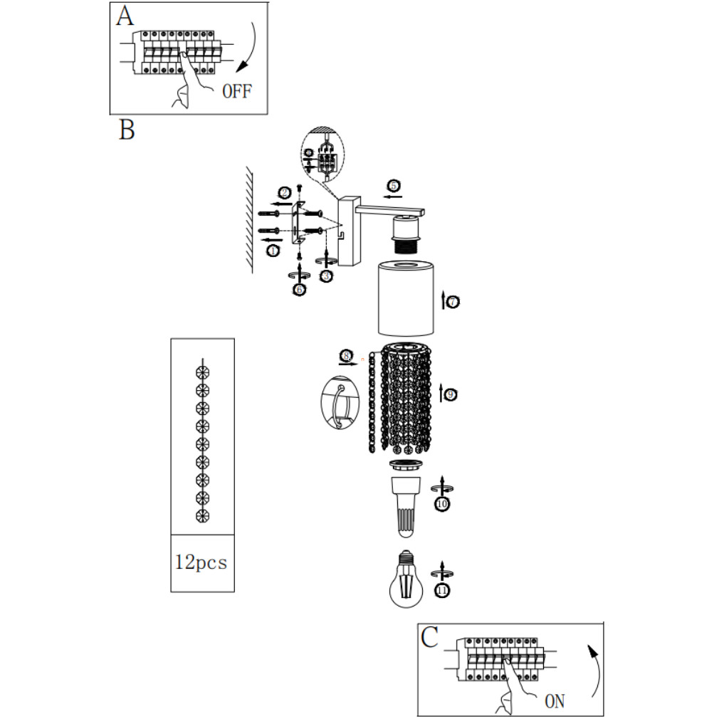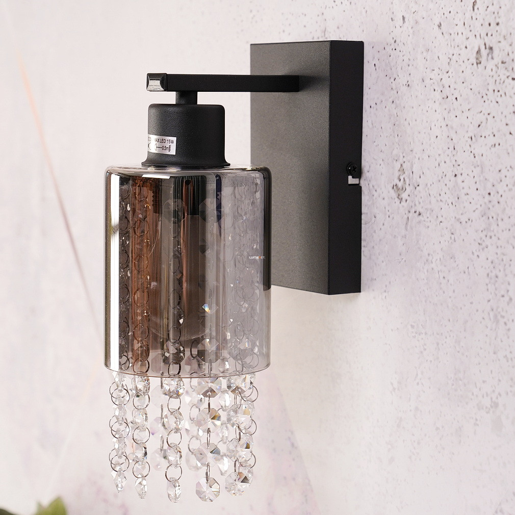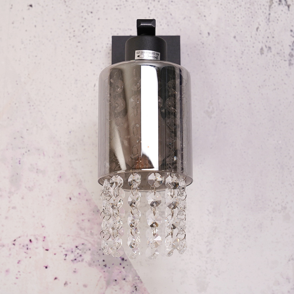 A Backey Globo 15799W fali lámpa kristály láncokkal egy modern lakásvilágítási megoldás, amely elegáns megjelenést biztosít bármely helyiségben. A lámpatest matt fekete és füstszínű árnyalatokkal készül, anyaga fém és üveg kristály, amely a fényt különleges módon töri meg. Egy darab E27 foglalattal rendelkezik, a fényforrás cserélhető, így a fényáram, a fényszín, a teljesítmény és a színhőmérséklet a választott izzótól függ. A lámpa 230 V névleges feszültségen működik, védettsége IP20, így beltéri használatra alkalmas. A termék méretei: 100 mm szélesség és 270 mm magasság, tömege 0,61 kg. A csomagolás mérete 12x15x17 cm. A lámpa nem tartalmaz fényforrást, a gyártó a Globo.