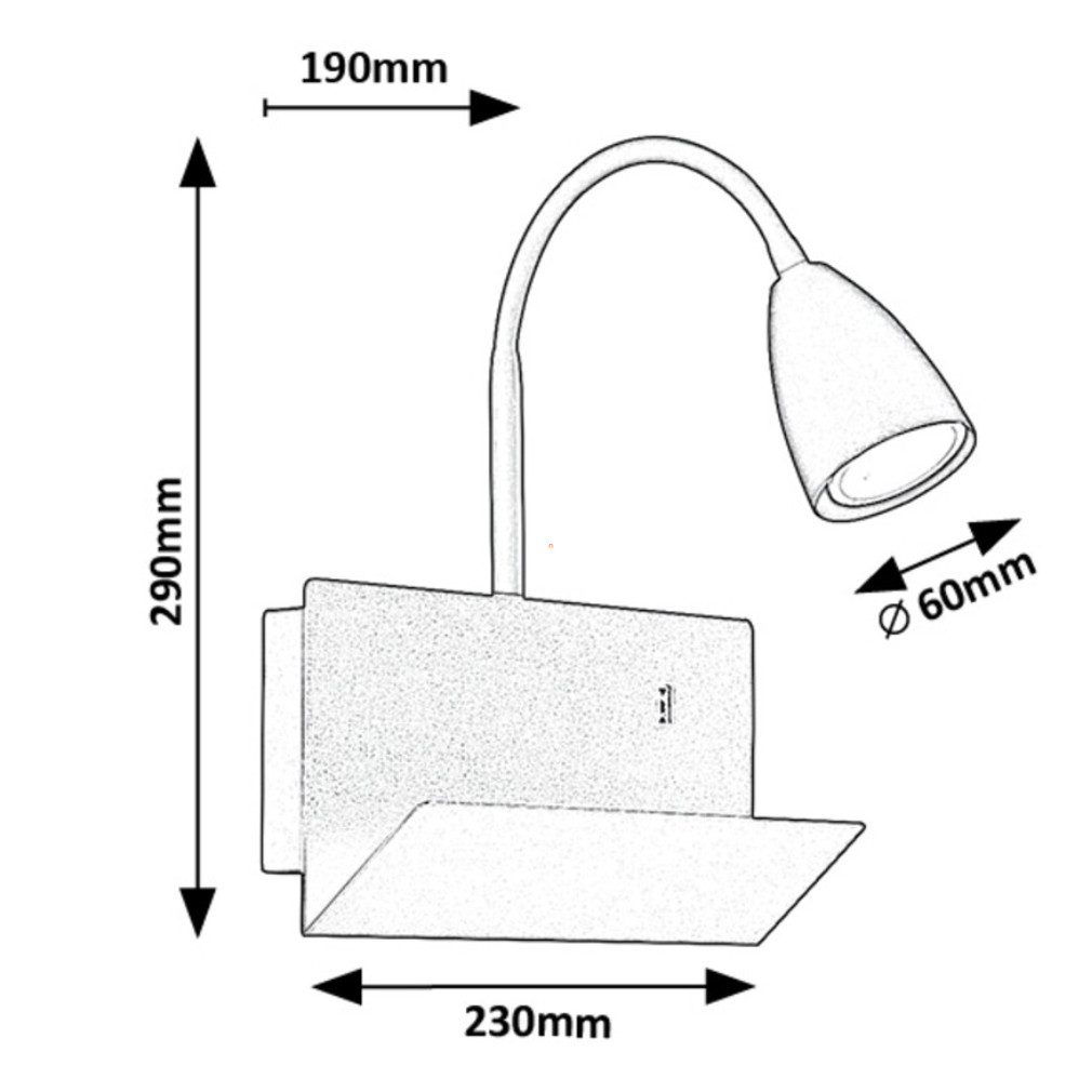 Fali lámpa telefontartóval és USB csatlakozóval - Tacito Rábalux 71089
