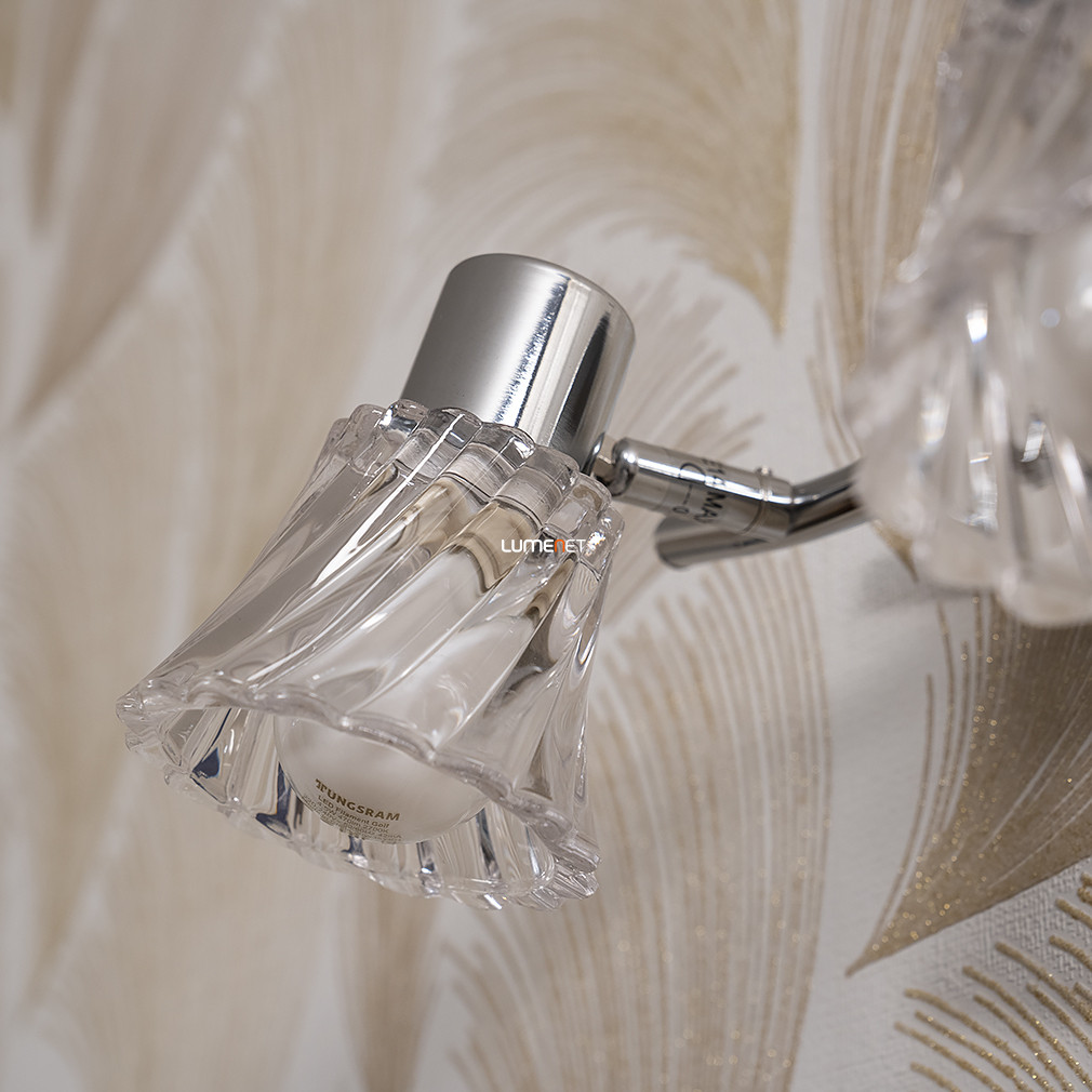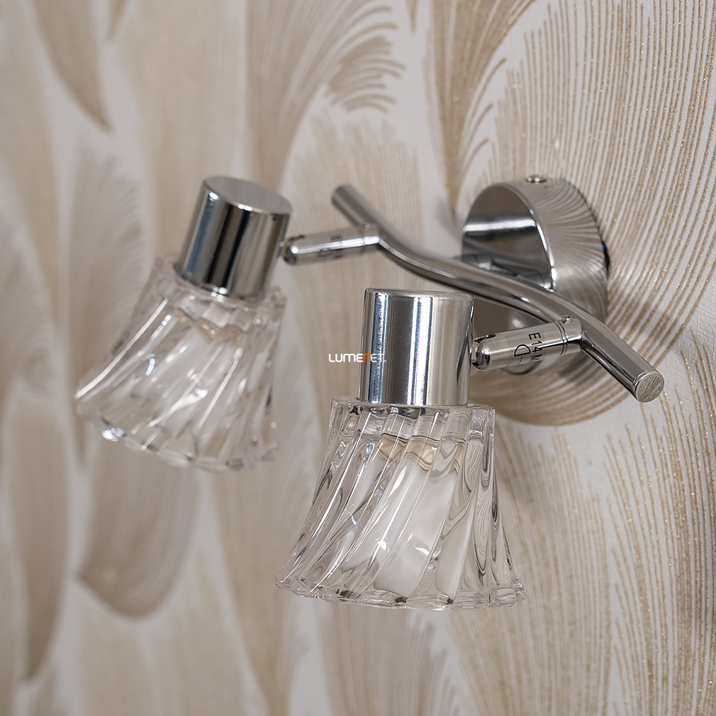 A Hestia Rábalux 5300 fali lámpa modern kialakítással és minőségi anyaghasználattal készült, amely fém és üveg elemeket ötvöz. A lámpatest két E14-es foglalattal rendelkezik, cserélhető fényforrással működik, így a fényáram, a fényszín, a teljesítmény és a színhőmérséklet szabadon választható. A termék króm és áttetsző színkombinációban elérhető, IP20 védettségi szinttel rendelkezik, ami beltéri használatra teszi alkalmassá. A lámpa méretei 265 mm hosszúság, 135 mm szélesség és 150 mm magasság, tömege 0,86 kg. A csomagolás mérete 27x10x15 cm. A termék nem tartalmaz fényforrást, szabályozási lehetőséggel nem rendelkezik. Gyártója a Rábalux.