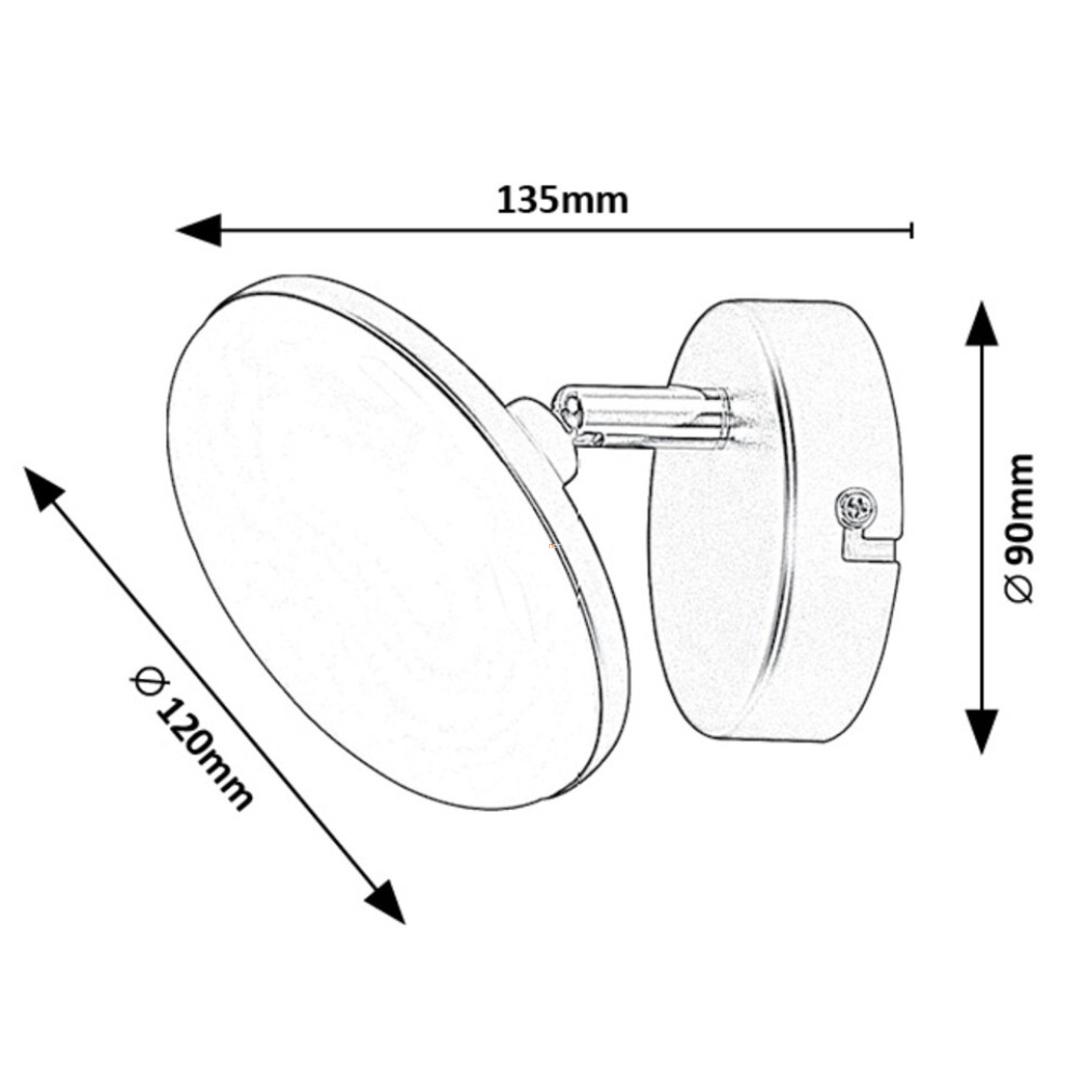 A Madi Rábalux 71062 fali LED lámpa modern kialakítású, állítható fejjel rendelkezik, amely lehetővé teszi a fény irányának precíz beállítását. A lámpatest 4 W teljesítményű, beépített LED modullal működik, amely 370 lumen fényáramot biztosít melegfehér, 3000 K színhőmérsékletű fénnyel. A termék matt fekete és fehér színben, fém és műanyag anyaghasználattal készül, IP20 védettséggel rendelkezik, így beltéri használatra alkalmas. A lámpa átmérője 120 mm, magassága 135 mm, névleges feszültsége 230 V, energiaosztálya F. Átlagos élettartama 30 000 óra, a csomagolás mérete 13x13x14 cm, tömege 0,17 kg. A fényforrás nem cserélhető, a LED modul a termék része.
