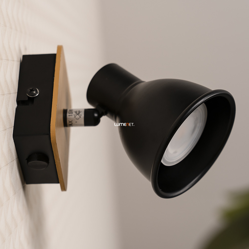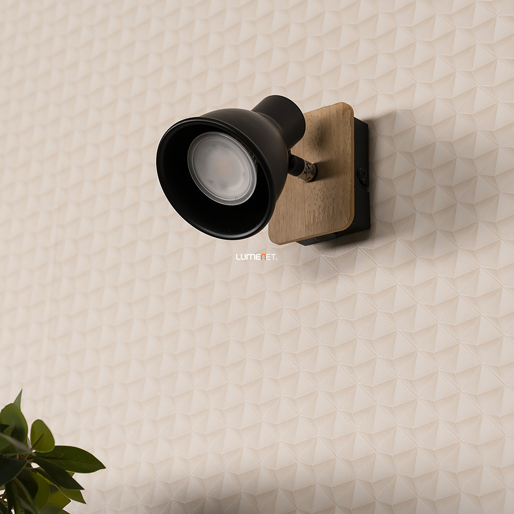 A Mac Rábalux 5902 fali spot lámpa vintage stílusban készült, bükk színű fa és fekete fém kombinációjával. A lámpatest egy darab GU10 foglalattal rendelkezik, amelybe cserélhető fényforrás helyezhető, így a fényáram, fényszín, teljesítmény és színhőmérséklet igény szerint választható. A lámpa nem szabályozható, de kapcsolóval ellátott, így könnyen kezelhető. A termék IP20 védettségi besorolással rendelkezik, beltéri használatra alkalmas. Mérete 150 mm hosszú és 100 mm magas, tömege 0,28 kg. A csomagolás méretei: 12 cm szélesség, 9 cm hosszúság, 13 cm magasság. A lámpatest nem tartalmaz fényforrást, a Rábalux gyártja.